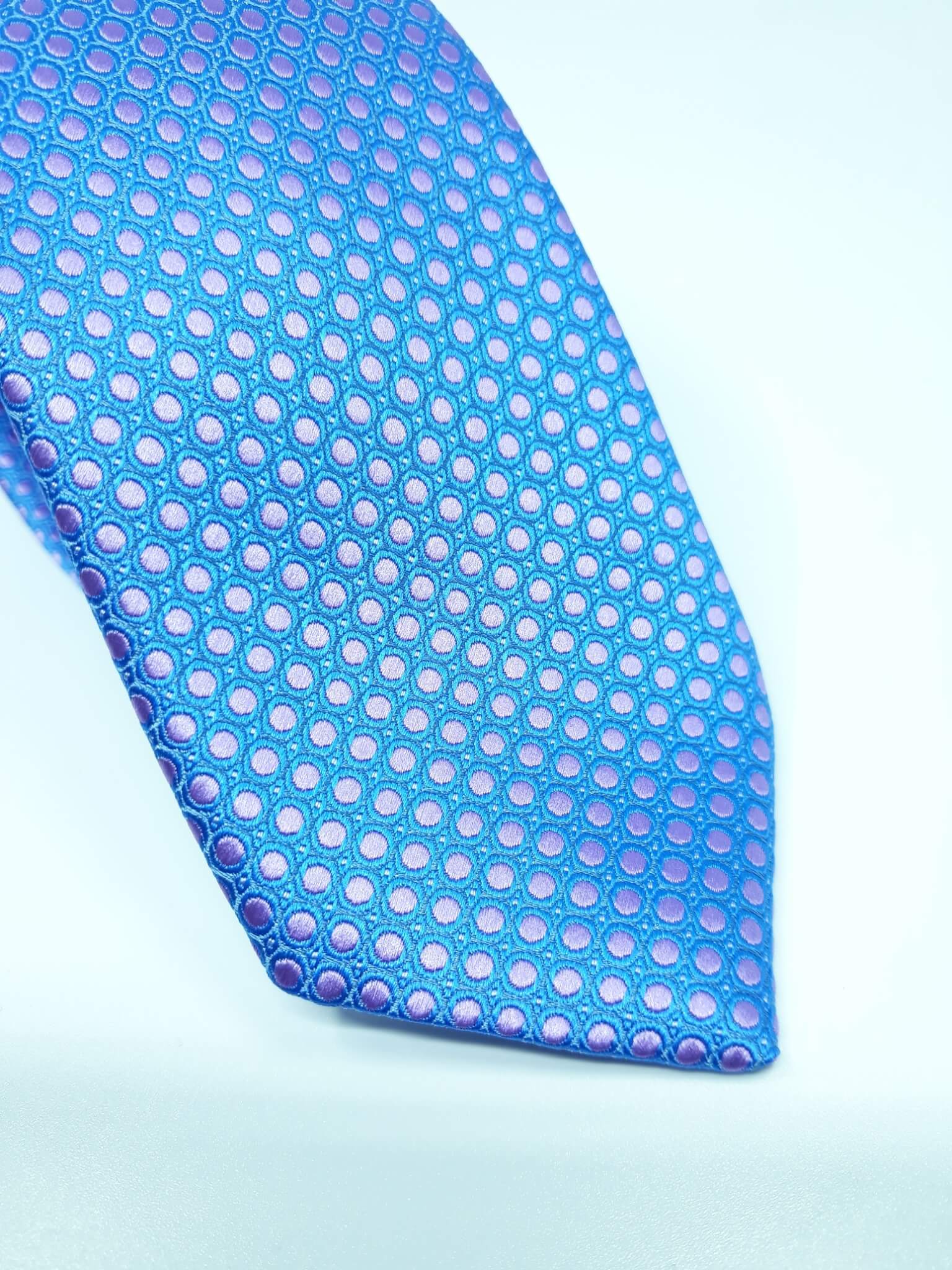 Elegancki krawat męski firmy Piotr o klasycznym i modnym kroju, niebieski w różowe kółka. Krawat o klasycznym i modnym kroju, wykonany ze sztucznego jedwabiu. Jest on bardzo ważnym elementem ubioru, dzięki któremu każdy mężczyzna może wnieść do swojego stroju odrobinę koloru. Kompletując garderobę należy pamiętać, aby krawat tworzył spójny zestaw z marynarką lub koszulą. Jego unikatowy wzór z pewnością spełni swoją funkcję w połączeniu z różnymi tkaninami w kilku wariantach kolorystycznych. Ponadto wyraźne i mocne akcenty zdobnicze dodadzą charakteru i pozwolą wyróżnić się stylem. Krawat można dobrać zarówno do karnacji, garnituru jak i temperamentu.
