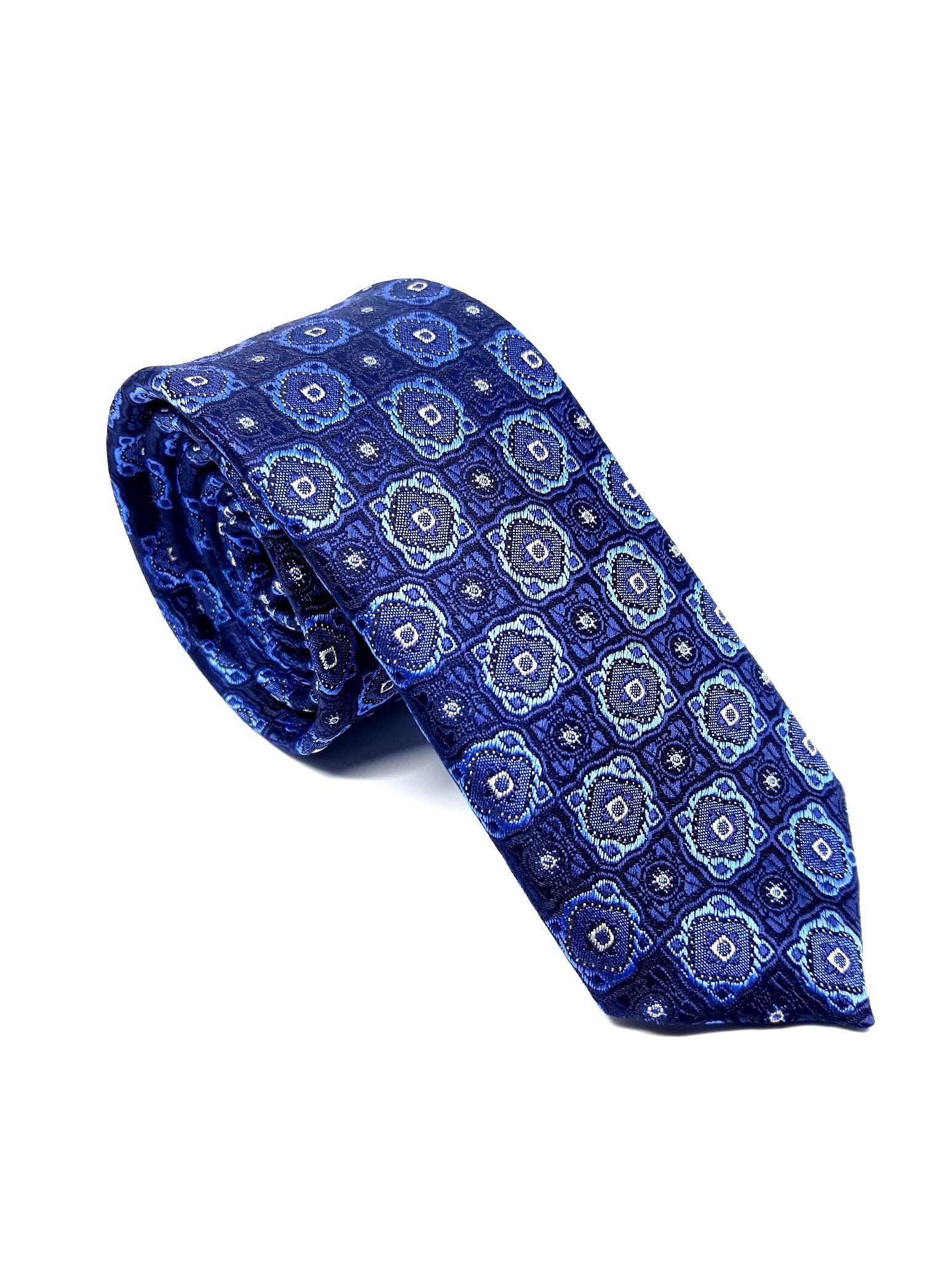Elegancki krawat męski firmy Piotr o klasycznym i modnym kroju w kolorze granatowym w niebieski wzór. Krawat o klasycznym i modnym kroju, wykonany ze sztucznego jedwabiu. Jest on bardzo ważnym elementem ubioru, dzięki któremu każdy mężczyzna może wnieść do swojego stroju odrobinę koloru. Kompletując garderobę należy pamiętać, aby krawat tworzył spójny zestaw z marynarką lub koszulą. Jego unikatowy wzór z pewnością spełni swoją funkcję w połączeniu z różnymi tkaninami w kilku wariantach kolorystycznych. Ponadto wyraźne i mocne akcenty zdobnicze dodadzą charakteru i pozwolą wyróżnić się stylem. Krawat można dobrać zarówno do karnacji, garnituru jak i temperamentu.