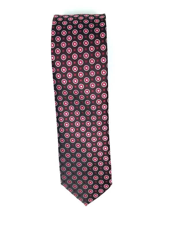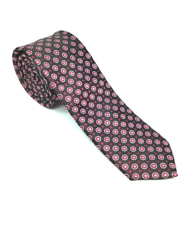 Elegancki krawat męski firmy Piotr o klasycznym i modnym kroju, czarny w różowe kropki. Krawat o klasycznym i modnym kroju, wykonany ze sztucznego jedwabiu. Jest on bardzo ważnym elementem ubioru, dzięki któremu każdy mężczyzna może wnieść do swojego stroju odrobinę koloru. Kompletując garderobę należy pamiętać, aby krawat tworzył spójny zestaw z marynarką lub koszulą. Jego unikatowy wzór z pewnością spełni swoją funkcję w połączeniu z różnymi tkaninami w kilku wariantach kolorystycznych. Ponadto wyraźne i mocne akcenty zdobnicze dodadzą charakteru i pozwolą wyróżnić się stylem. Krawat można dobrać zarówno do karnacji, garnituru jak i temperamentu.