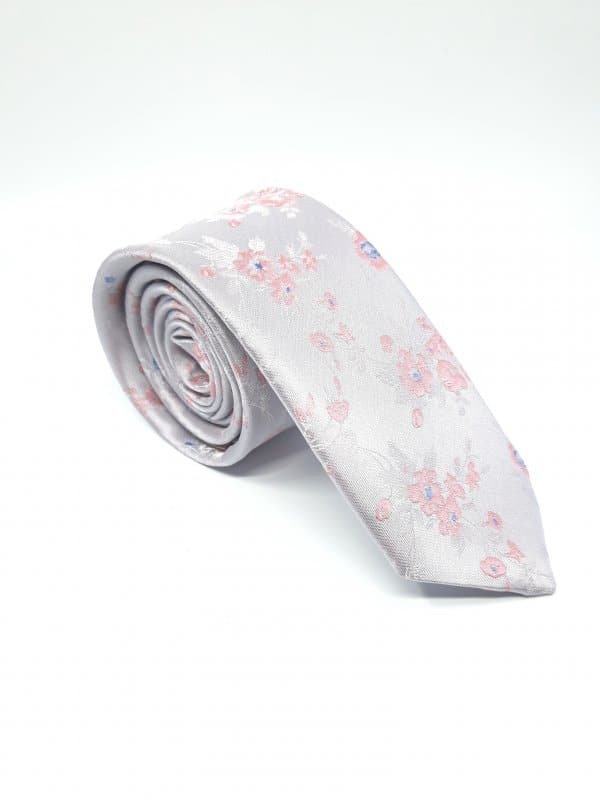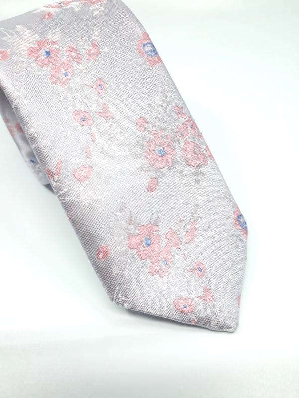 Elegancki Krawat Piotr Jasny Popiel Pudrowy Róż Kwiaty