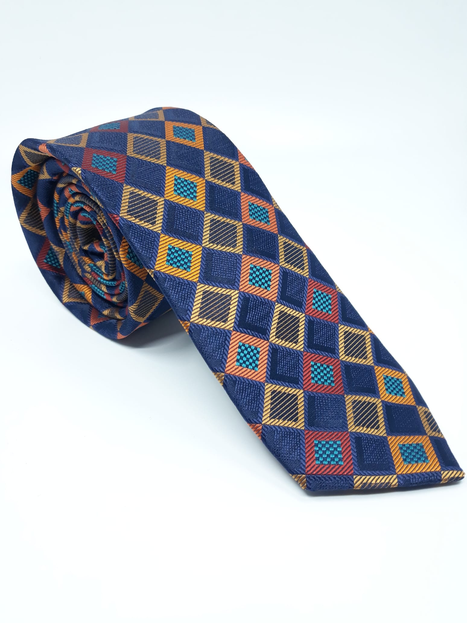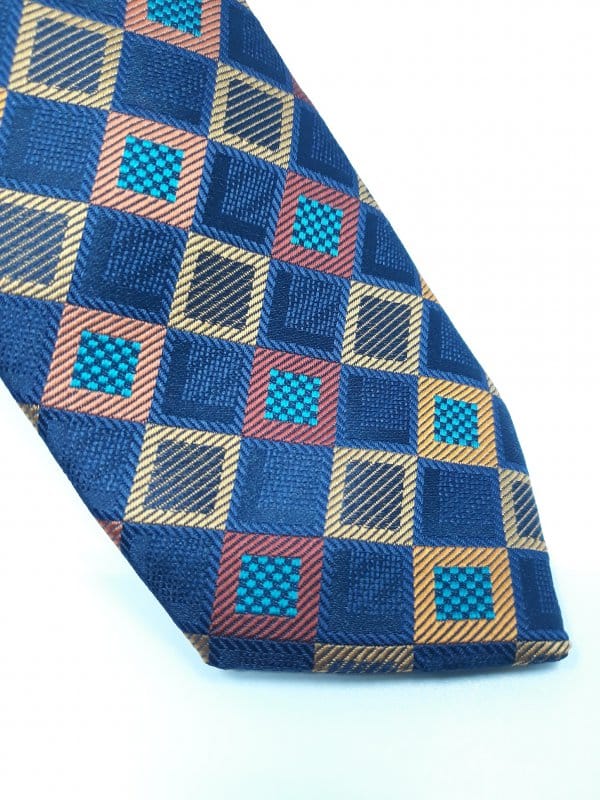 Elegancki krawat męski firmy Piotr o klasycznym i modnym kroju w kolorze granatu,musztardy i borda.Krawat o klasycznym i modnym kroju, wykonany ze sztucznego jedwabiu. Jest on bardzo ważnym elementem ubioru, dzięki któremu każdy mężczyzna może wnieść do swojego stroju odrobinę koloru. Kompletując garderobę należy pamiętać, aby krawat tworzył spójny zestaw z marynarką lub koszulą. Jego unikatowy wzór z pewnością spełni swoją funkcję w połączeniu z różnymi tkaninami w kilku wariantach kolorystycznych. Ponadto wyraźne i mocne akcenty zdobnicze dodadzą charakteru i pozwolą wyróżnić się stylem. Krawat można dobrać zarówno do karnacji, garnituru jak i temperamentu.
