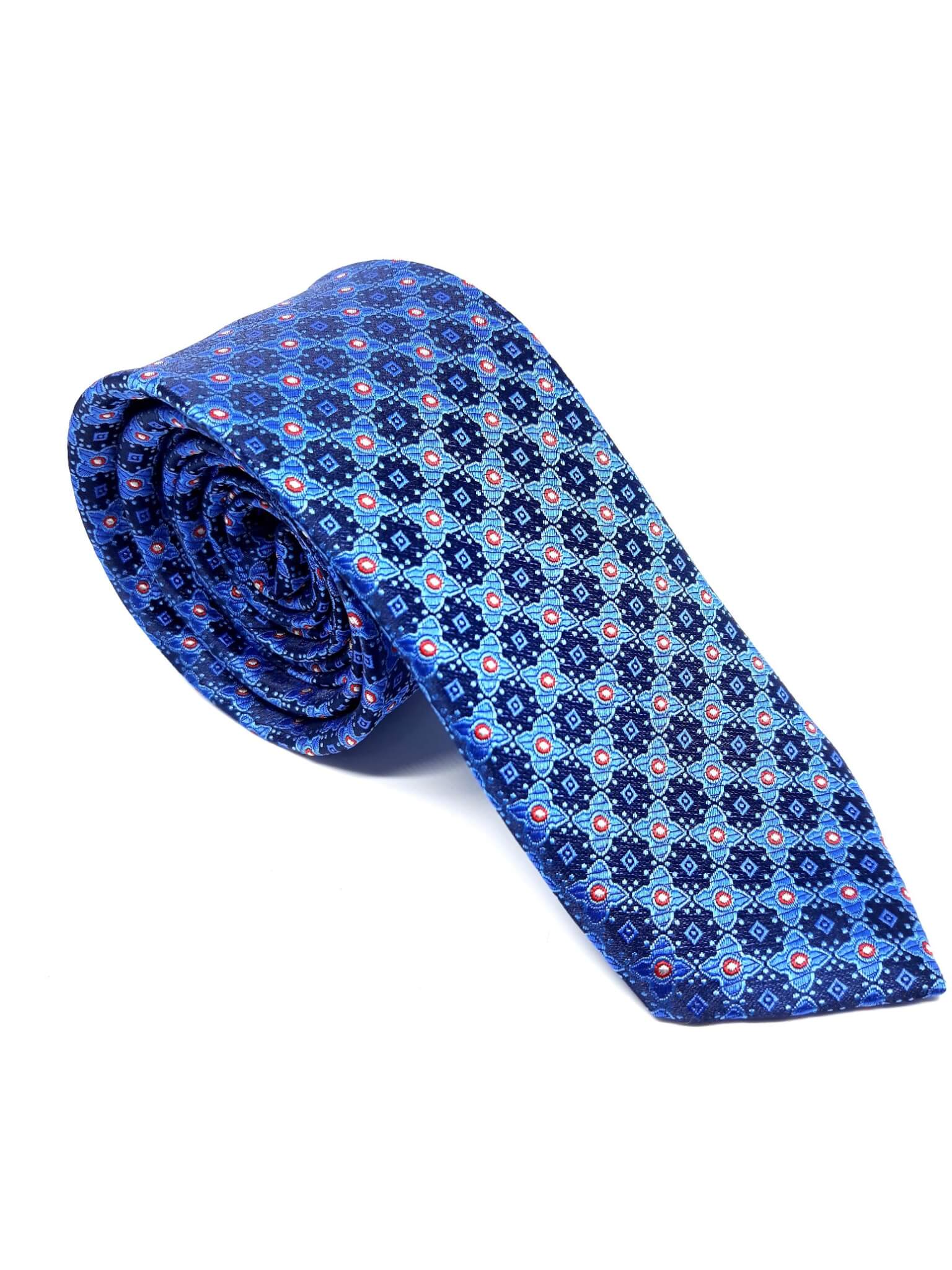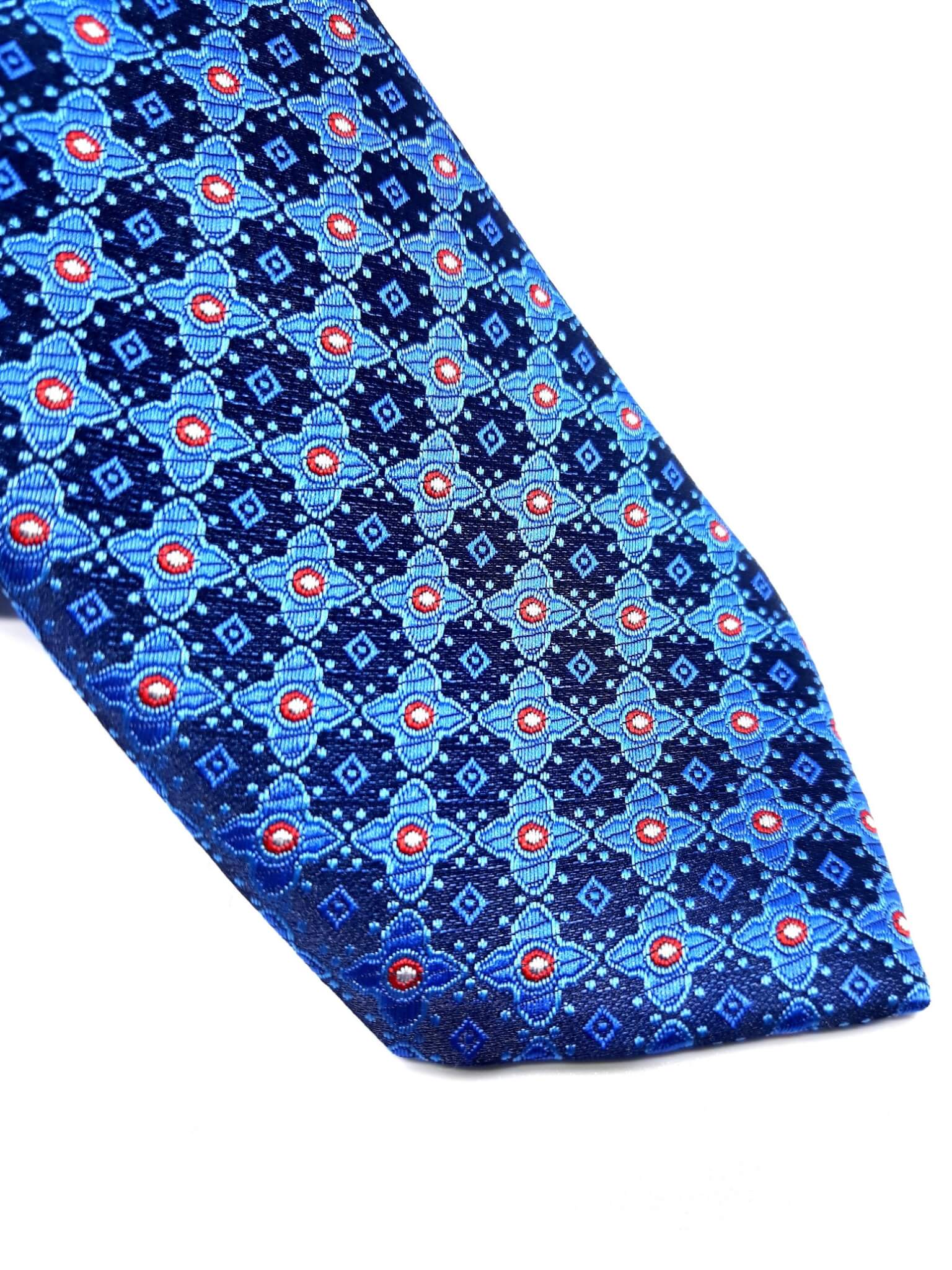 Elegancki krawat męski firmy Piotr o klasycznym i modnym kroju w kolorze niebieskim w kwiatki.Krawat o klasycznym i modnym kroju, wykonany ze sztucznego jedwabiu. Jest on bardzo ważnym elementem ubioru, dzięki któremu każdy mężczyzna może wnieść do swojego stroju odrobinę koloru. Kompletując garderobę należy pamiętać, aby krawat tworzył spójny zestaw z marynarką lub koszulą. Jego unikatowy wzór z pewnością spełni swoją funkcję w połączeniu z różnymi tkaninami w kilku wariantach kolorystycznych. Ponadto wyraźne i mocne akcenty zdobnicze dodadzą charakteru i pozwolą wyróżnić się stylem. Krawat można dobrać zarówno do karnacji, garnituru jak i temperamentu.
