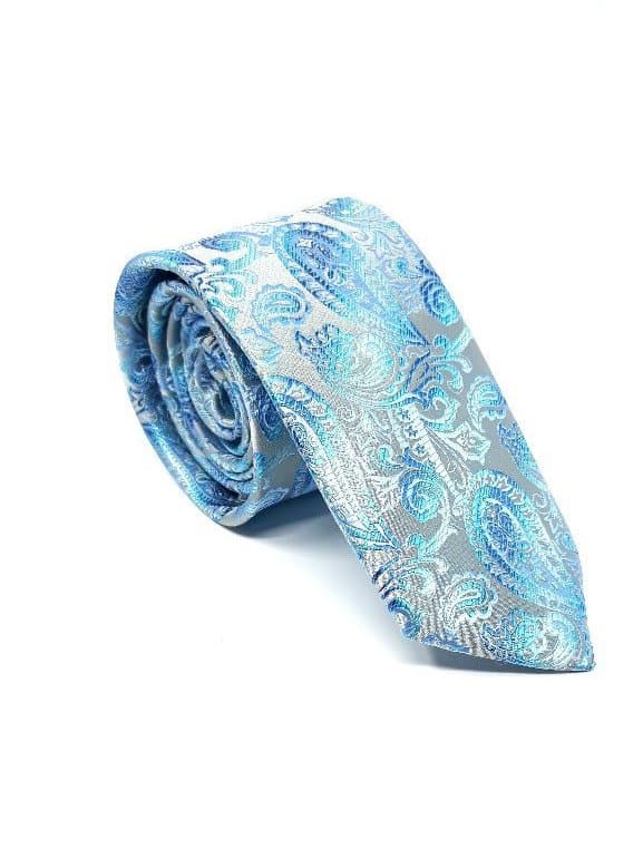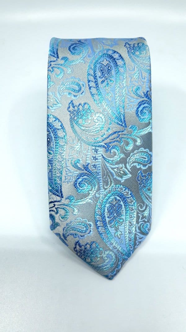 Elegancki krawat męski firmy Piotr o klasycznym i modnym kroju w kolorze srebrnym w turkusowo niebieski wzór.Krawat o klasycznym i modnym kroju, wykonany ze sztucznego jedwabiu. Jest on bardzo ważnym elementem ubioru, dzięki któremu każdy mężczyzna może wnieść do swojego stroju odrobinę koloru. Kompletując garderobę należy pamiętać, aby krawat tworzył spójny zestaw z marynarką lub koszulą. Jego unikatowy wzór z pewnością spełni swoją funkcję w połączeniu z różnymi tkaninami w kilku wariantach kolorystycznych. Ponadto wyraźne i mocne akcenty zdobnicze dodadzą charakteru i pozwolą wyróżnić się stylem. Krawat można dobrać zarówno do karnacji, garnituru jak i temperamentu.