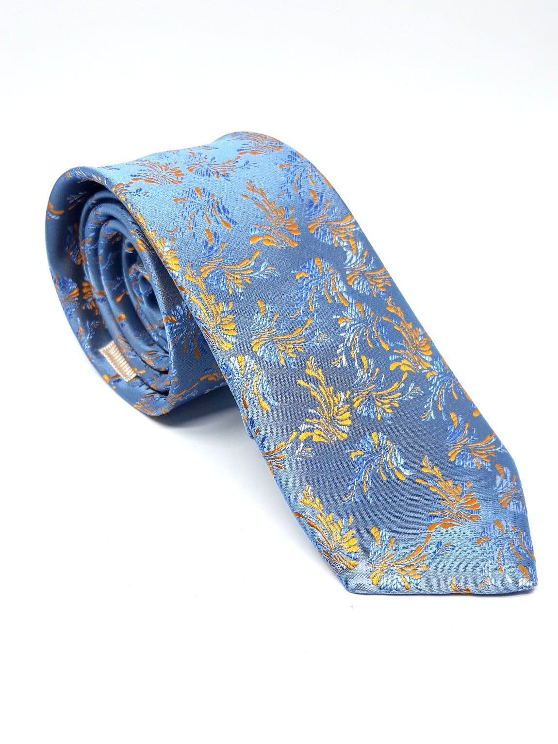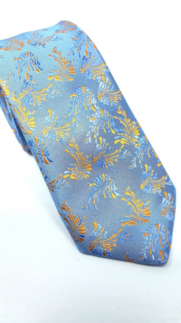 Elegancki krawat męski firmy Piotr o klasycznym i modnym kroju w kolorze niebieskim w pomarańczowy wzór.Krawat o klasycznym i modnym kroju, wykonany ze sztucznego jedwabiu. Jest on bardzo ważnym elementem ubioru, dzięki któremu każdy mężczyzna może wnieść do swojego stroju odrobinę koloru. Kompletując garderobę należy pamiętać, aby krawat tworzył spójny zestaw z marynarką lub koszulą. Jego unikatowy wzór z pewnością spełni swoją funkcję w połączeniu z różnymi tkaninami w kilku wariantach kolorystycznych. Ponadto wyraźne i mocne akcenty zdobnicze dodadzą charakteru i pozwolą wyróżnić się stylem. Krawat można dobrać zarówno do karnacji, garnituru jak i temperamentu.