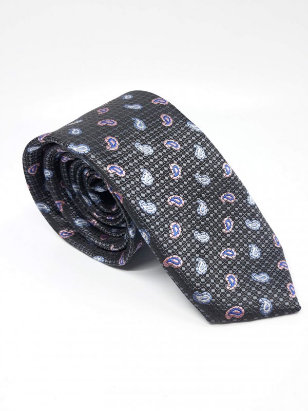 Elegancki krawat męski firmy Roberto Gabbani o klasycznym i modnym kroju, koloru popielu z ślimakami. Jest to ponadczasowy i obowiązkowy element męskiej stylizacji nie tylko odświętnej, w dodatku ten najbardziej wyrazisty. Kompletując garderobę należy pamiętać, aby krawat tworzył spójny zestaw z marynarką lub koszulą. Jego unikatowy wzór z pewnością spełni swoją funkcję w połączeniu z gładkimi tkaninami w kilku wariantach kolorystycznych. Ponadto wyraźne i mocne akcenty zdobnicze dodadzą charakteru i pozwolą wyróżnić się stylem. Krawat ten zdecydowanie będzie też idealnym prezentem dla mężczyzny.