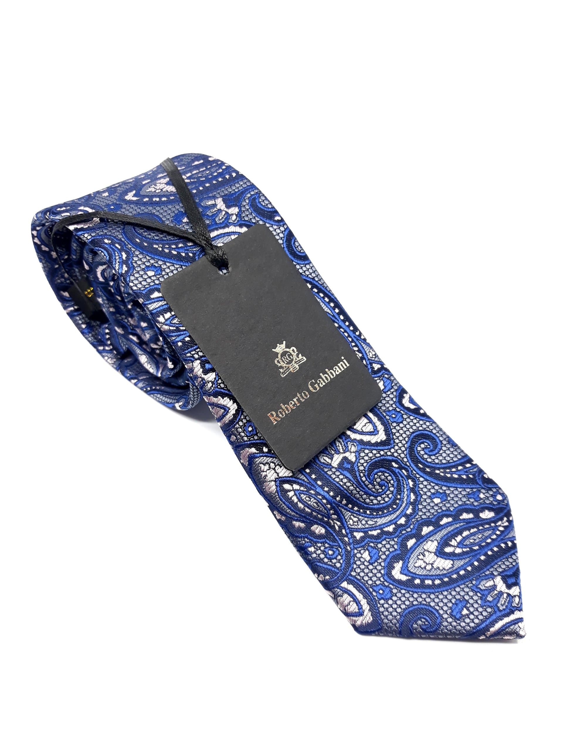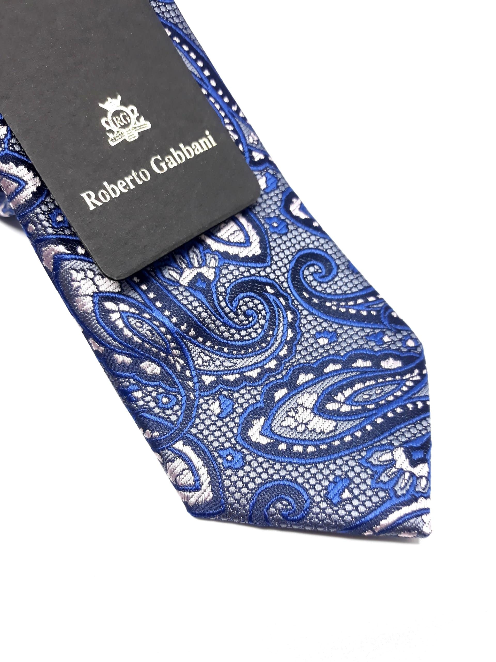 Elegancki krawat męski firmy Roberto Gabbani o klasycznym i modnym kroju, popielaty w ciekawy wzór dwukolorowy.