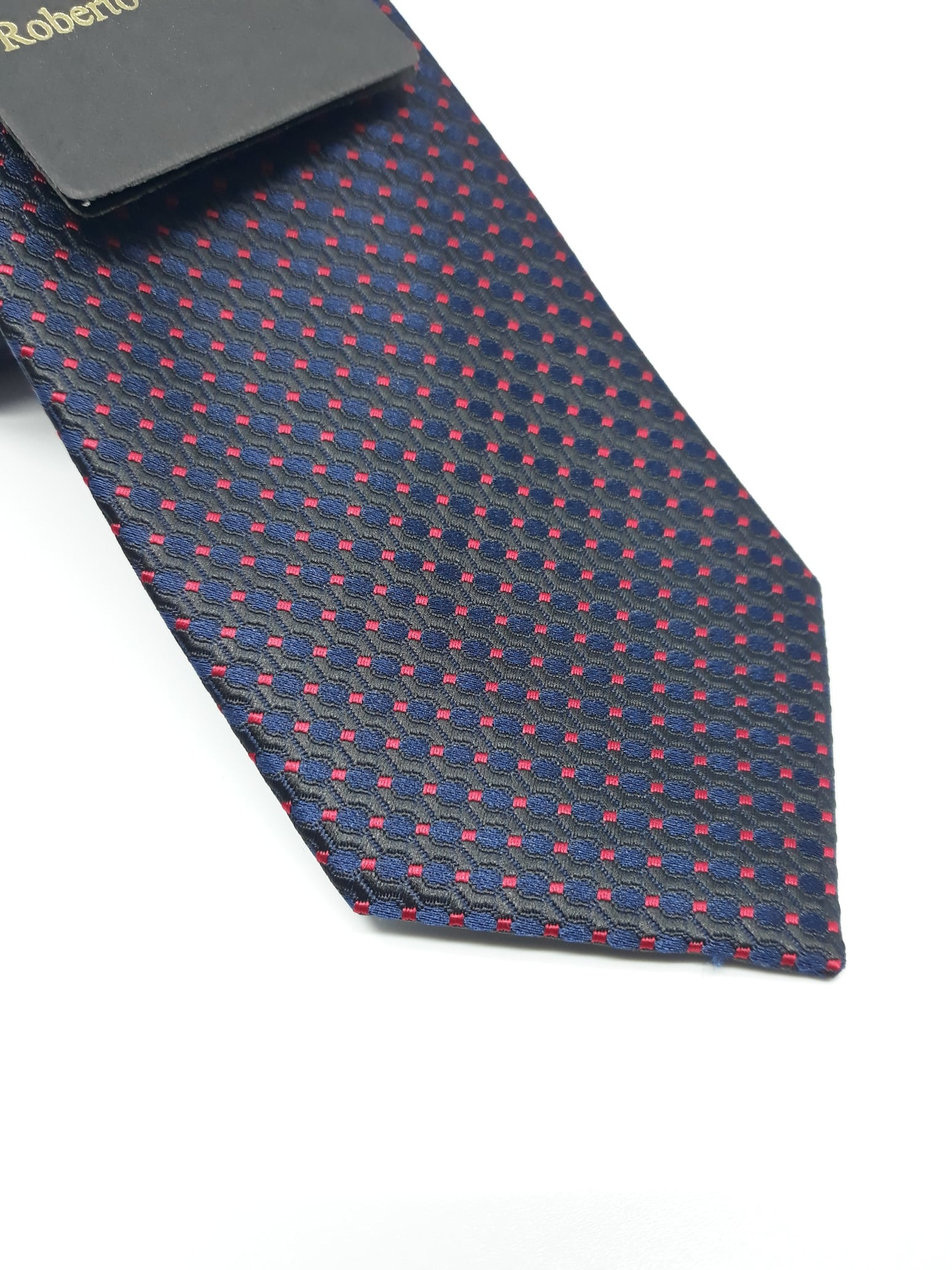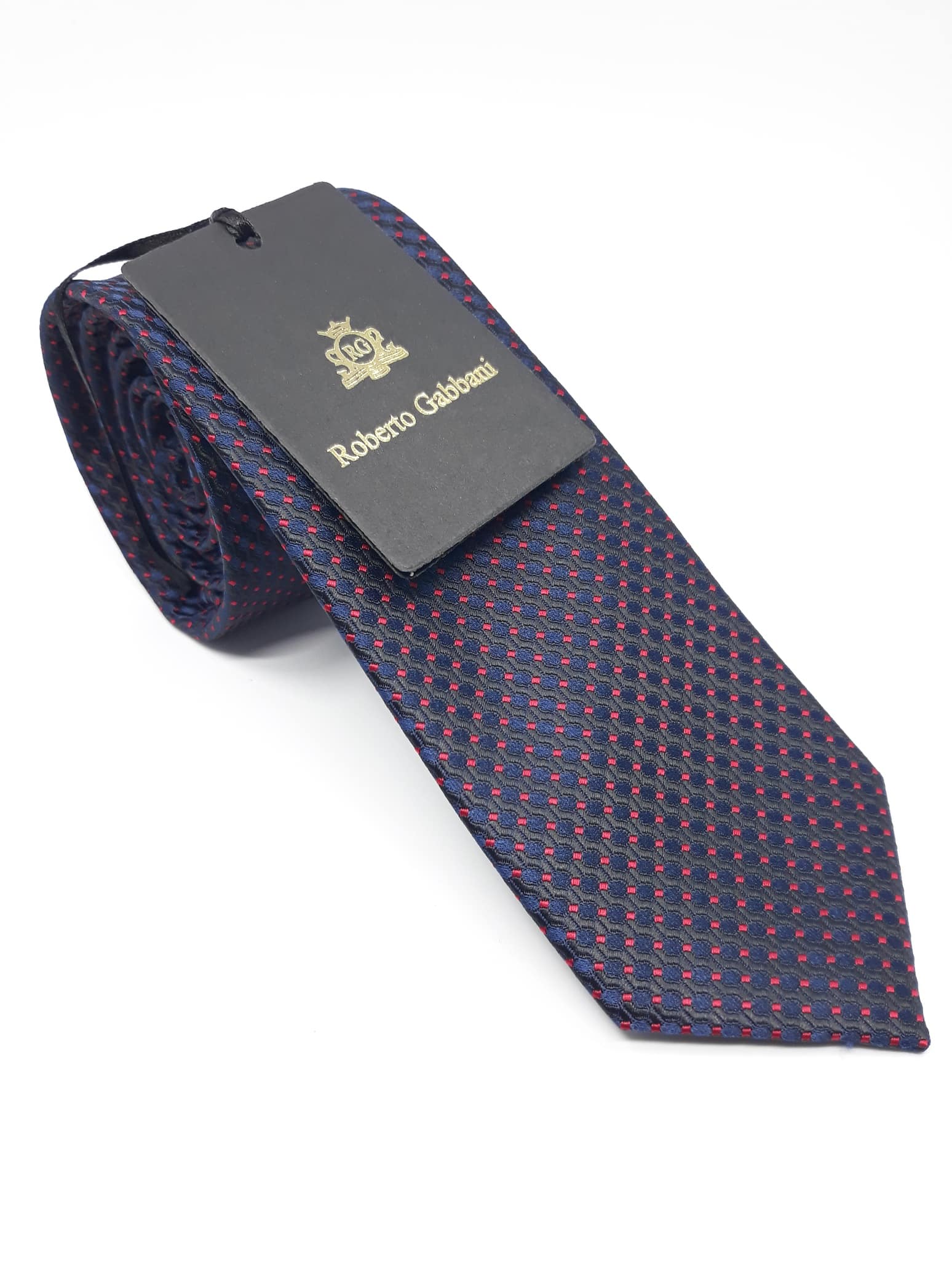Elegancki krawat męski firmy Roberto Gabbani o klasycznym i modnym kroju w kolorze granatu w czerwone kropki. Krawat o klasycznym i modnym kroju, wykonany z miękkiej microfibry. Jest on bardzo ważnym elementem ubioru, dzięki któremu każdy mężczyzna może wnieść do swojego stroju odrobinę koloru. Kompletując garderobę należy pamiętać, aby krawat tworzył spójny zestaw z marynarką lub koszulą. Jego unikatowy wzór z pewnością spełni swoją funkcję w połączeniu z różnymi tkaninami w kilku wariantach kolorystycznych. Ponadto wyraźne i mocne akcenty zdobnicze dodadzą charakteru i pozwolą wyróżnić się stylem. Krawat można dobrać zarówno do karnacji, garnituru jak i temperamentu.