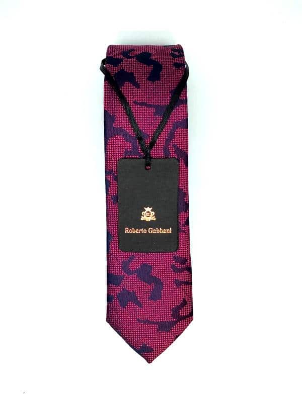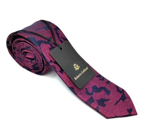 Elegancki krawat męski firmy Roberto Gabbani o klasycznym i modnym kroju, różowy w granatowy wzór. Wykonany ze sztucznego jedwabiu. Jest on bardzo ważnym elementem ubioru, dzięki któremu każdy mężczyzna może wnieść do swojego stroju odrobinę koloru. Kompletując garderobę należy pamiętać, aby krawat tworzył spójny zestaw z marynarką lub koszulą. Jego unikatowy wzór z pewnością spełni swoją funkcję w połączeniu z różnymi tkaninami w kilku wariantach kolorystycznych. Ponadto wyraźne i mocne akcenty zdobnicze dodadzą charakteru i pozwolą wyróżnić się stylem. Krawat można dobrać zarówno do karnacji, garnituru jak i temperamentu.