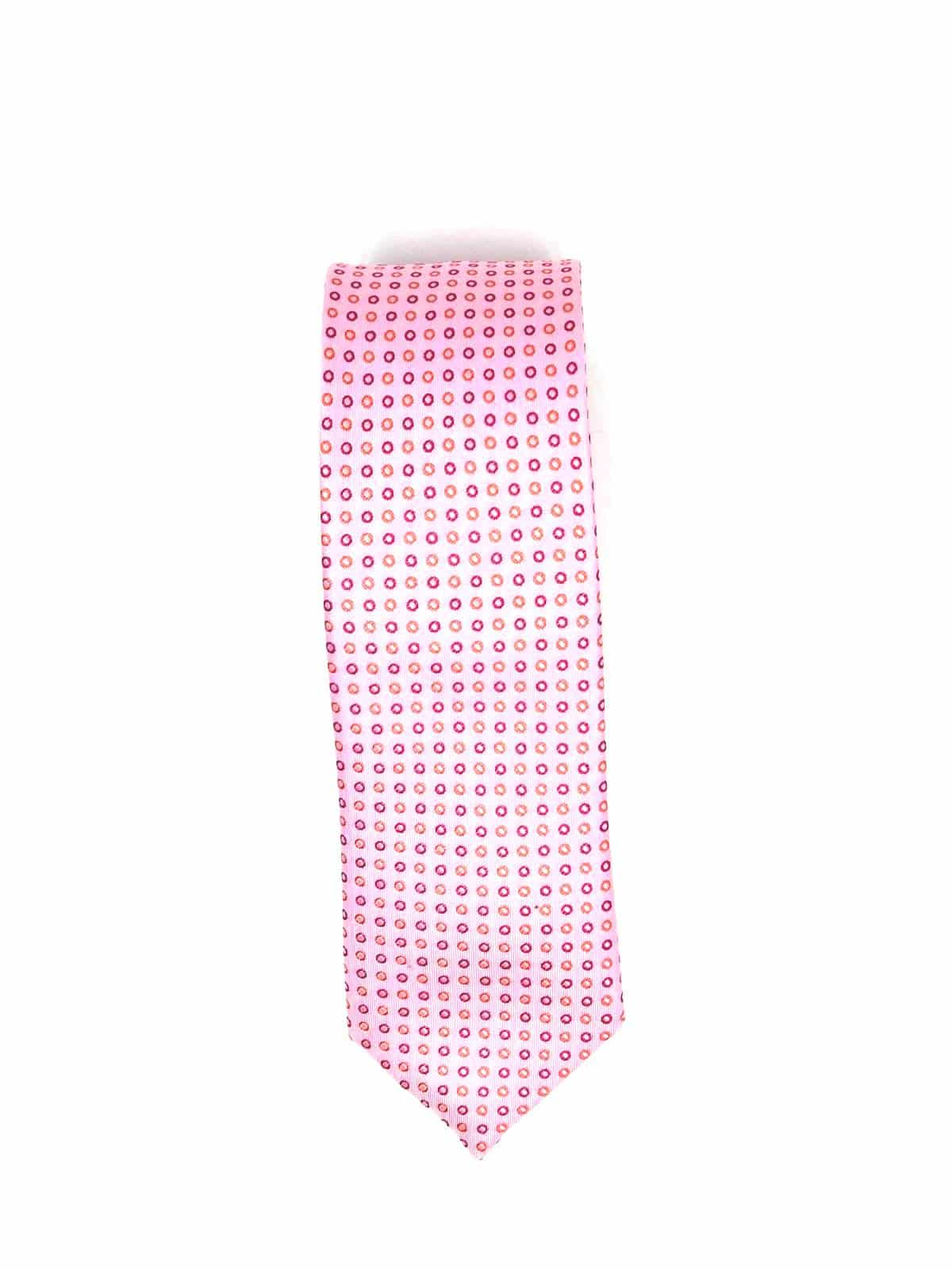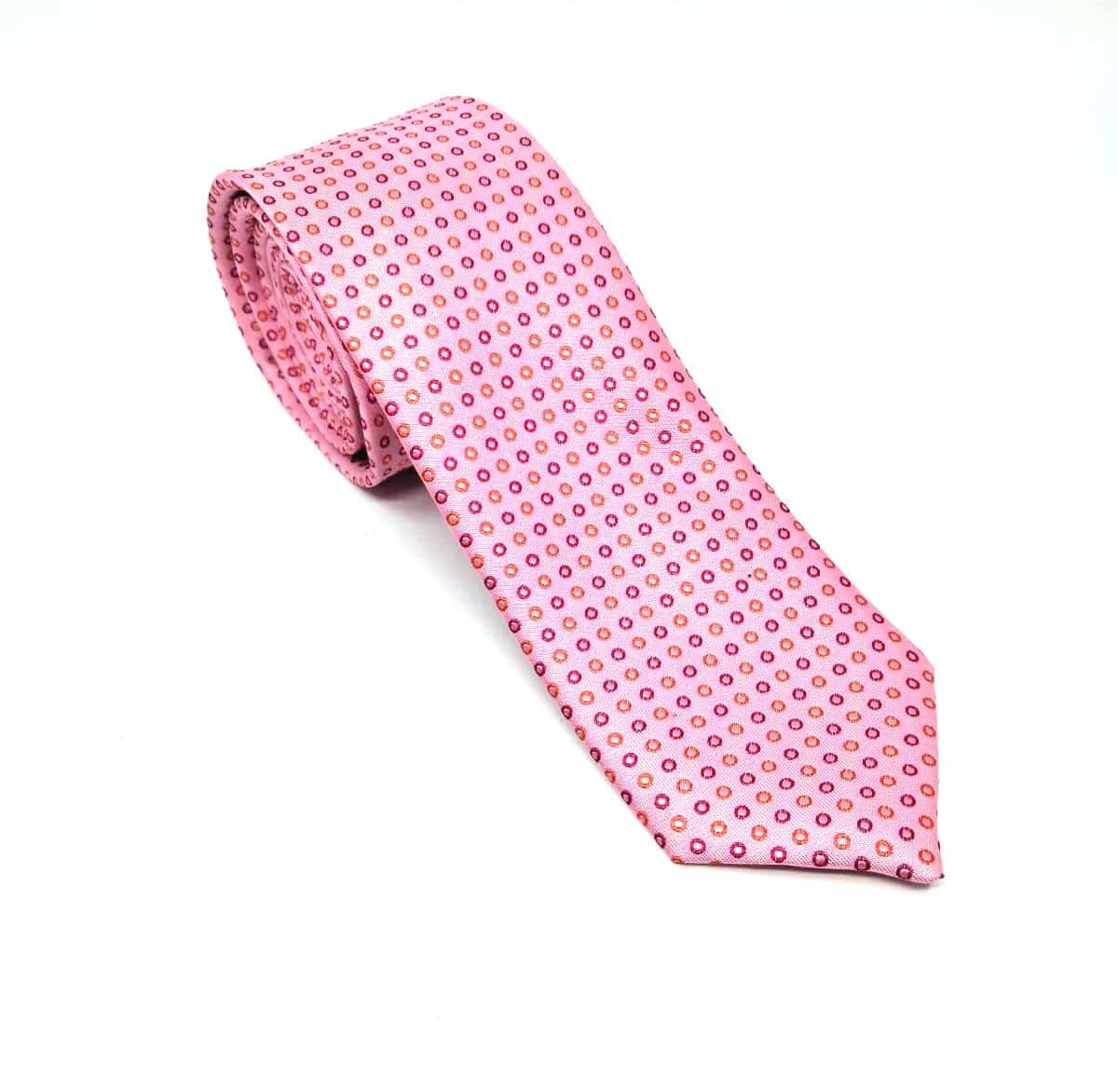Elegancki krawat męski firmy Piotr o klasycznym i modnym kroju w kolorze różowym w kółka.Krawat o klasycznym i modnym kroju, wykonany ze sztucznego jedwabiu. Jest on bardzo ważnym elementem ubioru, dzięki któremu każdy mężczyzna może wnieść do swojego stroju odrobinę koloru. Kompletując garderobę należy pamiętać, aby krawat tworzył spójny zestaw z marynarką lub koszulą. Jego unikatowy wzór z pewnością spełni swoją funkcję w połączeniu z różnymi tkaninami w kilku wariantach kolorystycznych. Ponadto wyraźne i mocne akcenty zdobnicze dodadzą charakteru i pozwolą wyróżnić się stylem. Krawat można dobrać zarówno do karnacji, garnituru jak i temperamentu.