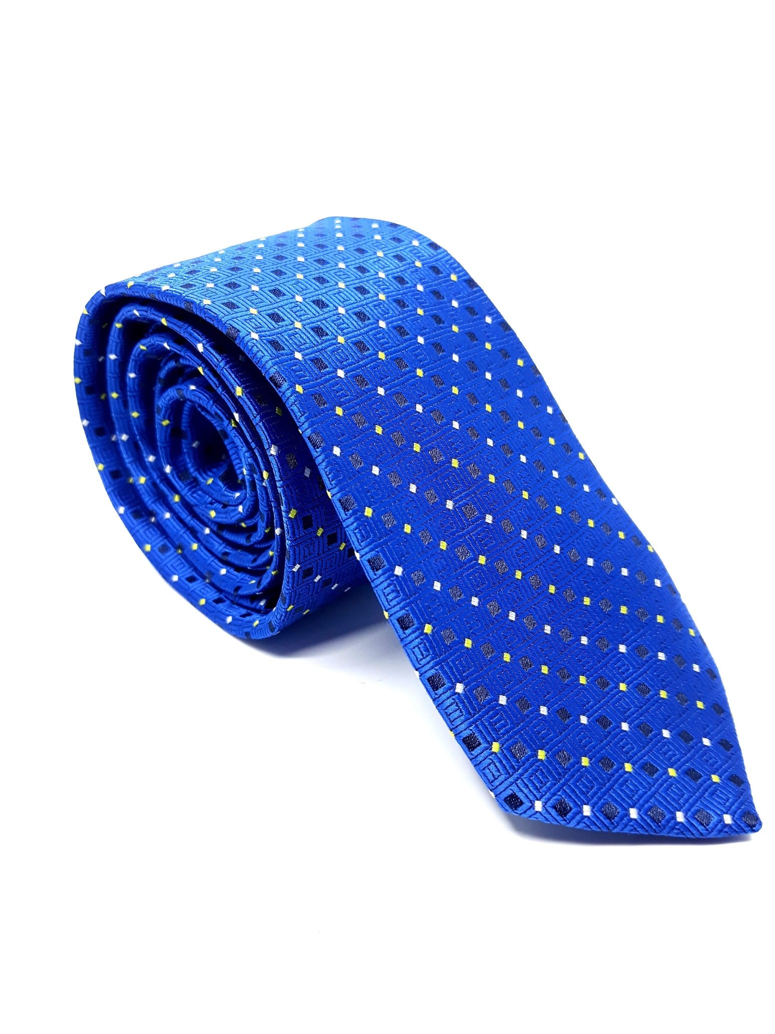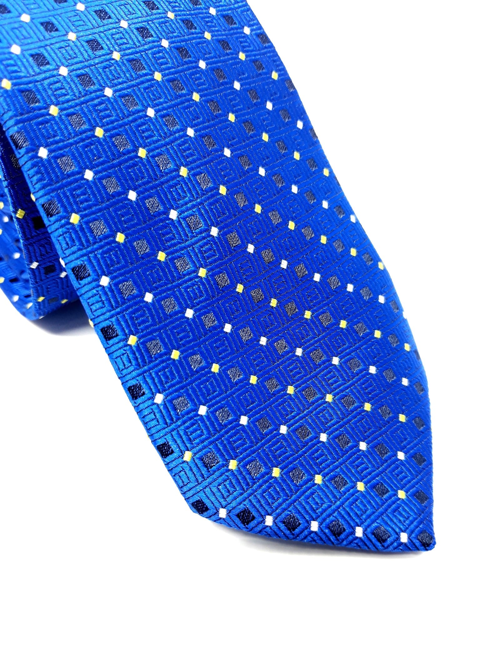 Elegancki krawat męski firmy Roberto Gabbani o klasycznym i modnym kroju, szafirowy w czarne, żółte i białe kwadraciki. Krawat o klasycznym i modnym kroju, wykonany z miękkiej microfibry. Jest on bardzo ważnym elementem ubioru, dzięki któremu każdy mężczyzna może wnieść do swojego stroju odrobinę koloru. Kompletując garderobę należy pamiętać, aby krawat tworzył spójny zestaw z marynarką lub koszulą. Jego unikatowy wzór z pewnością spełni swoją funkcję w połączeniu z różnymi tkaninami w kilku wariantach kolorystycznych. Ponadto wyraźne i mocne akcenty zdobnicze dodadzą charakteru i pozwolą wyróżnić się stylem. Krawat można dobrać zarówno do karnacji, garnituru jak i temperamentu.
