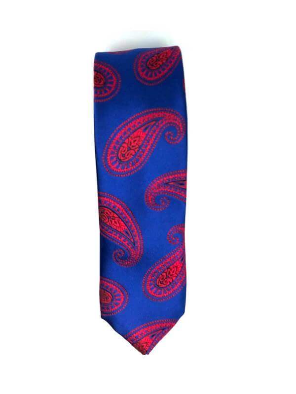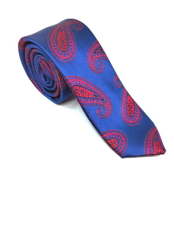 Elegancki krawat męski firmy Piotr o klasycznym i modnym kroju, szafirowy w czerwony wzór turecki. Wykonany ze sztucznego jedwabiu. Jest on bardzo ważnym elementem ubioru, dzięki któremu każdy mężczyzna może wnieść do swojego stroju odrobinę koloru. Kompletując garderobę należy pamiętać, aby krawat tworzył spójny zestaw z marynarką lub koszulą. Jego unikatowy wzór z pewnością spełni swoją funkcję w połączeniu z różnymi tkaninami w kilku wariantach kolorystycznych. Ponadto wyraźne i mocne akcenty zdobnicze dodadzą charakteru i pozwolą wyróżnić się stylem. Krawat można dobrać zarówno do karnacji, garnituru jak i temperamentu.