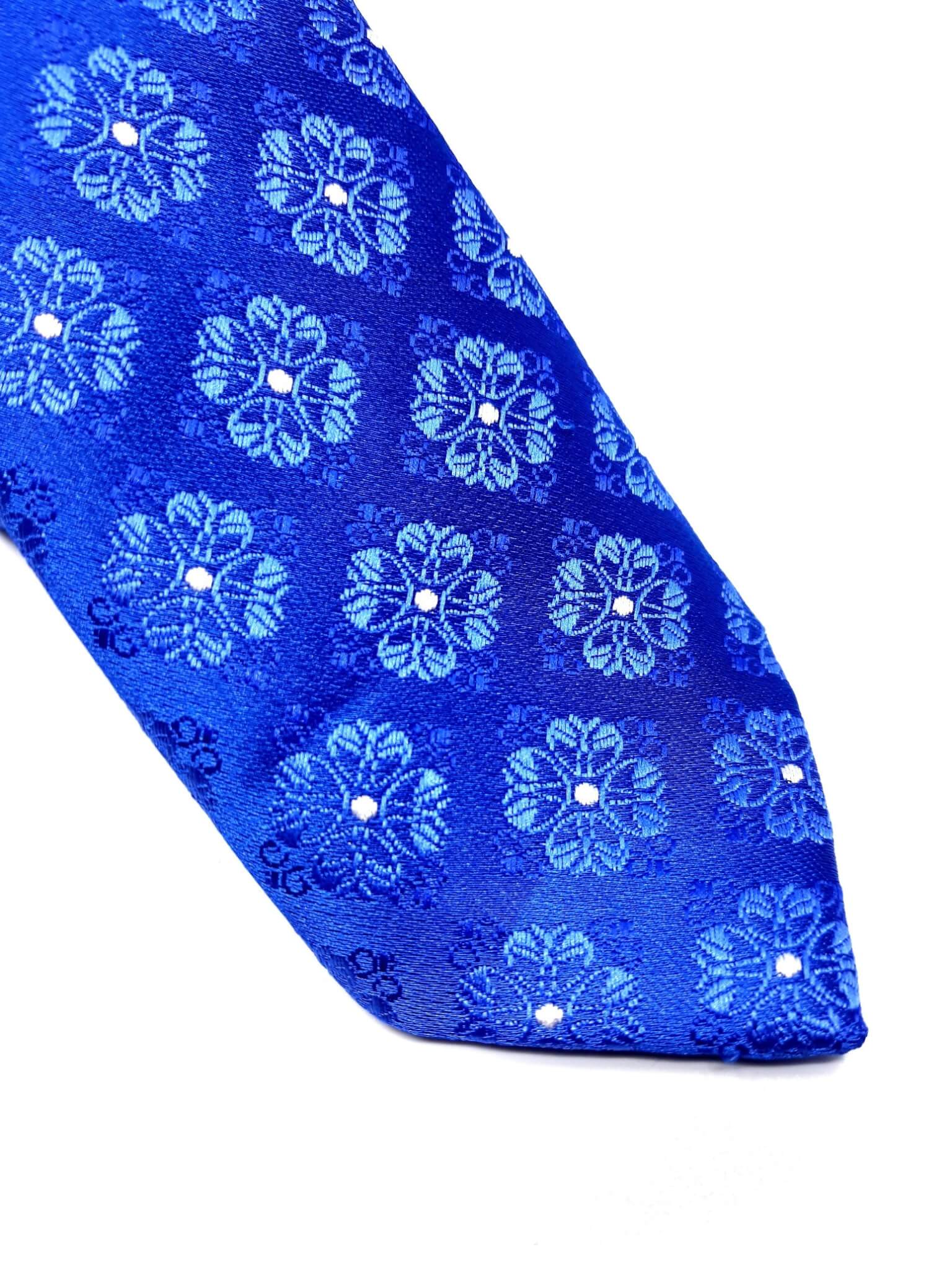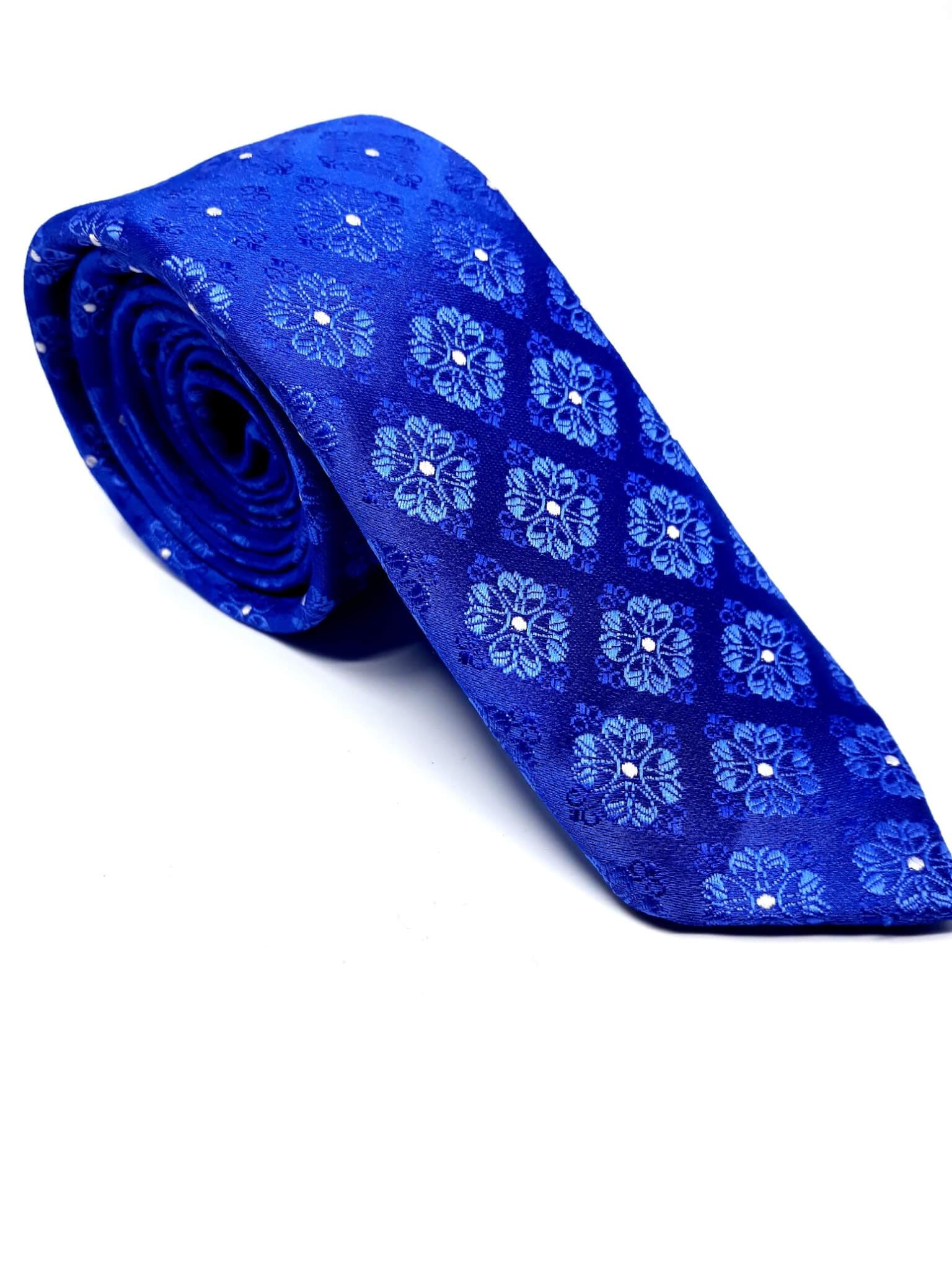Elegancki krawat męski firmy Piotr o klasycznym i modnym kroju, szafirowy w kwiaty. Krawat o klasycznym i modnym kroju, wykonany ze sztucznego jedwabiu. Jest on bardzo ważnym elementem ubioru, dzięki któremu każdy mężczyzna może wnieść do swojego stroju odrobinę koloru. Kompletując garderobę należy pamiętać, aby krawat tworzył spójny zestaw z marynarką lub koszulą. Jego unikatowy wzór z pewnością spełni swoją funkcję w połączeniu z różnymi tkaninami w kilku wariantach kolorystycznych. Ponadto wyraźne i mocne akcenty zdobnicze dodadzą charakteru i pozwolą wyróżnić się stylem. Krawat można dobrać zarówno do karnacji, garnituru jak i temperamentu.