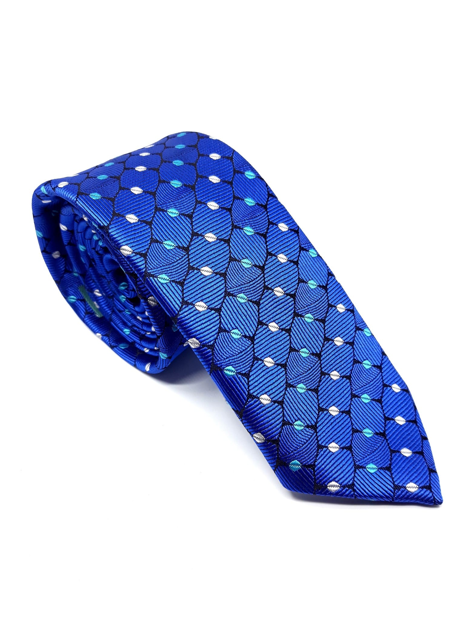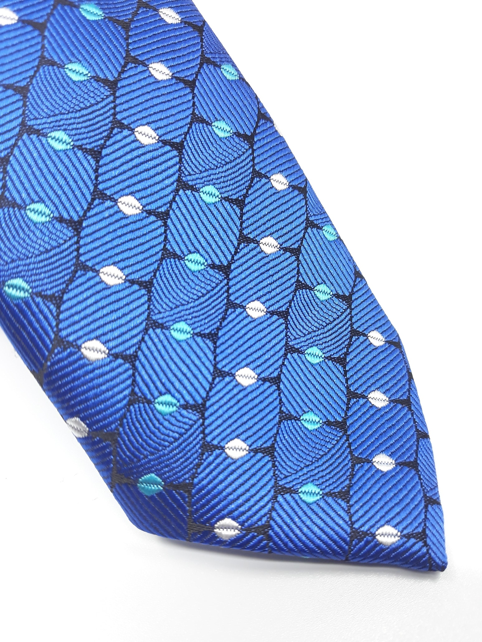 Elegancki krawat męski firmy Piotr o klasycznym i modnym kroju, szafirowy w ciekawy wzór. Krawat o klasycznym i modnym kroju, wykonany ze sztucznego jedwabiu. Jest on bardzo ważnym elementem ubioru, dzięki któremu każdy mężczyzna może wnieść do swojego stroju odrobinę koloru. Kompletując garderobę należy pamiętać, aby krawat tworzył spójny zestaw z marynarką lub koszulą. Jego unikatowy wzór z pewnością spełni swoją funkcję w połączeniu z różnymi tkaninami w kilku wariantach kolorystycznych. Ponadto wyraźne i mocne akcenty zdobnicze dodadzą charakteru i pozwolą wyróżnić się stylem. Krawat można dobrać zarówno do karnacji, garnituru jak i temperamentu.