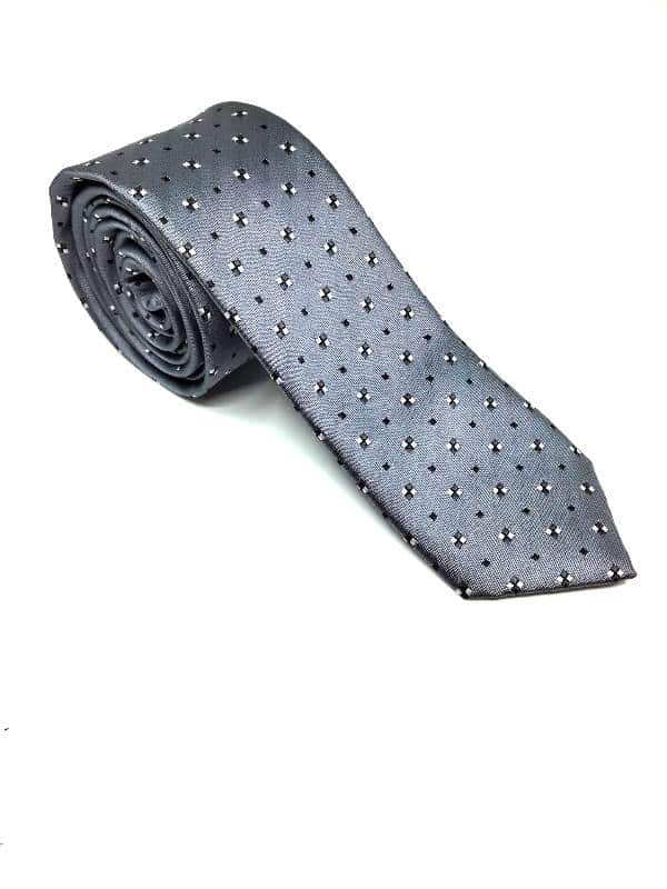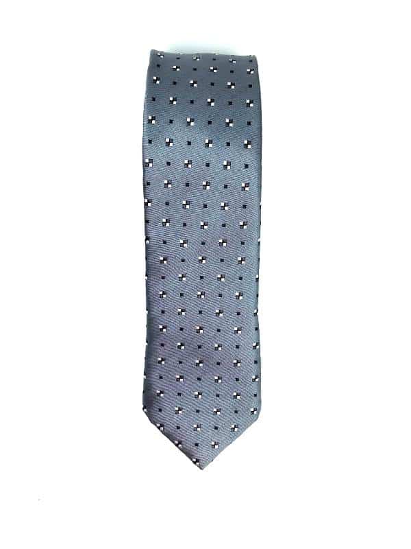 Elegancki krawat męski firmy Piotr o klasycznym i modnym kroju, szary w czarny wzór. Wykonany ze sztucznego jedwabiu. Jest on bardzo ważnym elementem ubioru, dzięki któremu każdy mężczyzna może wnieść do swojego stroju odrobinę koloru. Kompletując garderobę należy pamiętać, aby krawat tworzył spójny zestaw z marynarką lub koszulą. Jego unikatowy wzór z pewnością spełni swoją funkcję w połączeniu z różnymi tkaninami w kilku wariantach kolorystycznych. Ponadto wyraźne i mocne akcenty zdobnicze dodadzą charakteru i pozwolą wyróżnić się stylem. Krawat można dobrać zarówno do karnacji, garnituru jak i temperamentu.