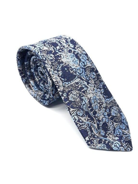 Elegancki Krawat Szary Granatowo Niebieski Wzór