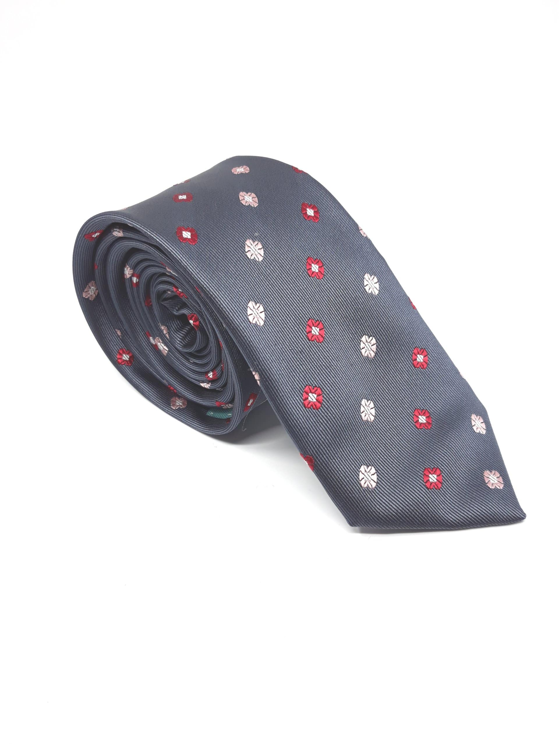 Elegancki krawat męski firmy Roberto Gabbani o klasycznym i modnym kroju, szary w kwiatki. Jest to ponadczasowy i obowiązkowy element męskiej stylizacji nie tylko odświętnej, w dodatku ten najbardziej wyrazisty. Kompletując garderobę należy pamiętać, aby krawat tworzył spójny zestaw z marynarką lub koszulą. Jego unikatowy wzór z pewnością spełni swoją funkcję w połączeniu z gładkimi tkaninami w kilku wariantach kolorystycznych. Ponadto wyraźne i mocne akcenty zdobnicze dodadzą charakteru i pozwolą wyróżnić się stylem. Krawat ten zdecydowanie będzie też idealnym prezentem dla mężczyzny.