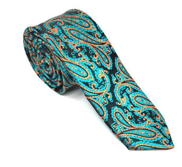 Elegancki krawat męski firmy Piotr o klasycznym i modnym kroju w kolorze turkusowym w pomarańczowy wzór.Krawat o klasycznym i modnym kroju, wykonany ze sztucznego jedwabiu. Jest on bardzo ważnym elementem ubioru, dzięki któremu każdy mężczyzna może wnieść do swojego stroju odrobinę koloru. Kompletując garderobę należy pamiętać, aby krawat tworzył spójny zestaw z marynarką lub koszulą. Jego unikatowy wzór z pewnością spełni swoją funkcję w połączeniu z różnymi tkaninami w kilku wariantach kolorystycznych. Ponadto wyraźne i mocne akcenty zdobnicze dodadzą charakteru i pozwolą wyróżnić się stylem. Krawat można dobrać zarówno do karnacji, garnituru jak i temperamentu.
