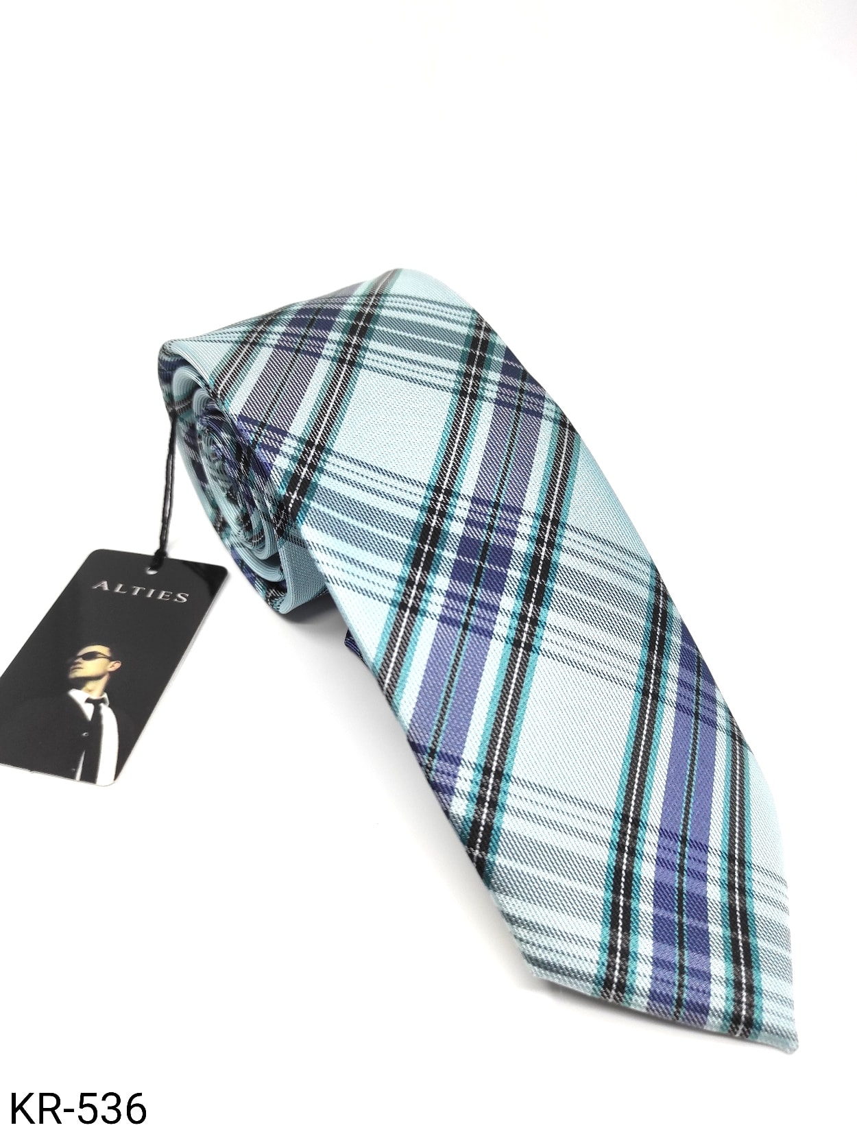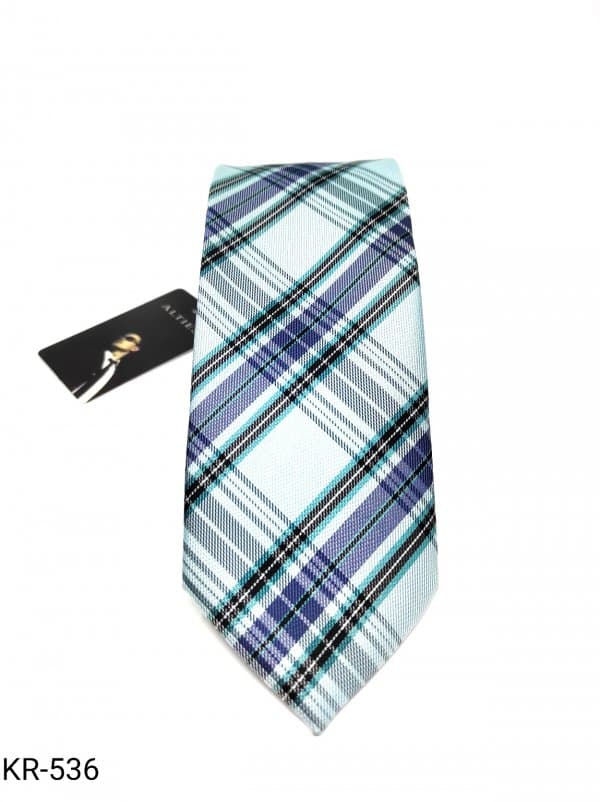 Elegancki krawat męski firmy Alties o klasycznym i modnym kroju,turkusowy w kratę czarno-niebiesko-miętową. Krawat o klasycznym i modnym kroju, wykonany z microfibry. Jest on bardzo ważnym elementem ubioru, dzięki któremu każdy mężczyzna może wnieść do swojego stroju odrobinę koloru. Kompletując garderobę należy pamiętać, aby krawat tworzył spójny zestaw z marynarką lub koszulą. Jego unikatowy wzór z pewnością spełni swoją funkcję w połączeniu z różnymi tkaninami w kilku wariantach kolorystycznych. Ponadto wyraźne i mocne akcenty zdobnicze dodadzą charakteru i pozwolą wyróżnić się stylem. Krawat można dobrać zarówno do karnacji, garnituru jak i temperamentu.