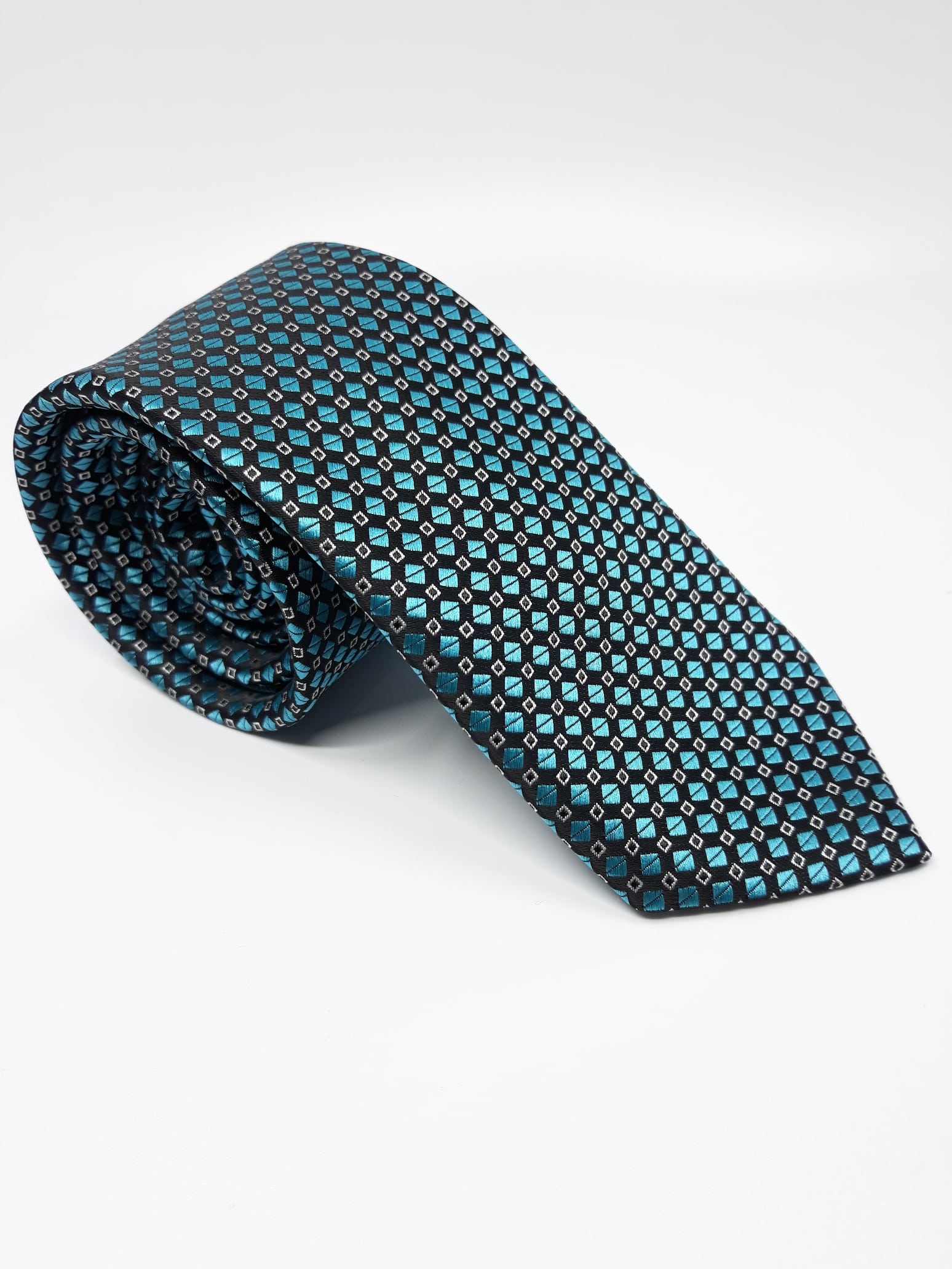 Elegancki krawat męski firmy Piotr o klasycznym i modnym kroju, turkusowy w kwadraty. Krawat o klasycznym i modnym kroju, wykonany ze sztucznego jedwabiu. Jest on bardzo ważnym elementem ubioru, dzięki któremu każdy mężczyzna może wnieść do swojego stroju odrobinę koloru. Kompletując garderobę należy pamiętać, aby krawat tworzył spójny zestaw z marynarką lub koszulą. Jego unikatowy wzór z pewnością spełni swoją funkcję w połączeniu z różnymi tkaninami w kilku wariantach kolorystycznych. Ponadto wyraźne i mocne akcenty zdobnicze dodadzą charakteru i pozwolą wyróżnić się stylem. Krawat można dobrać zarówno do karnacji, garnituru jak i temperamentu.