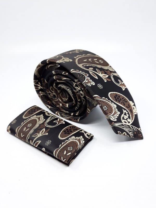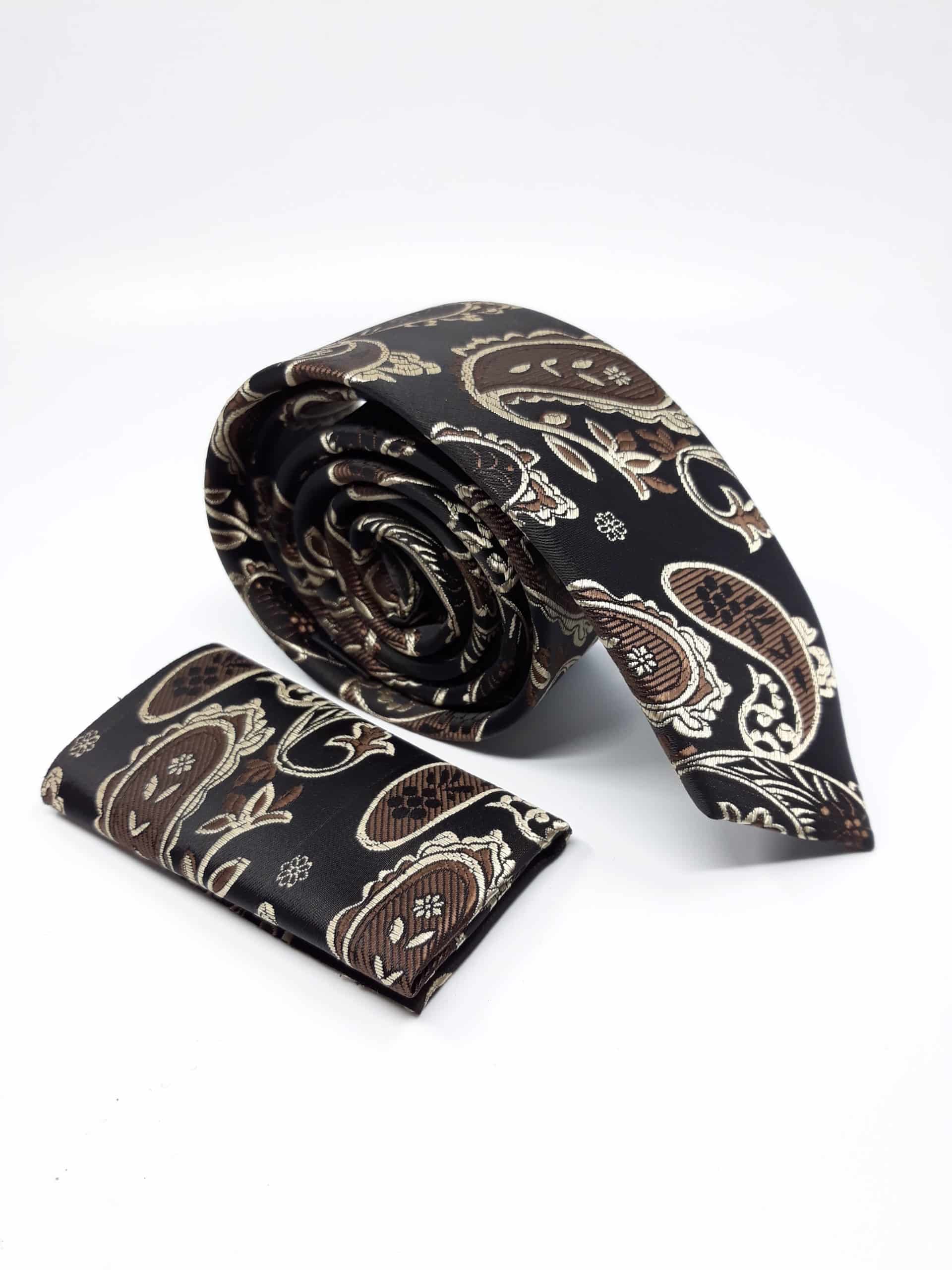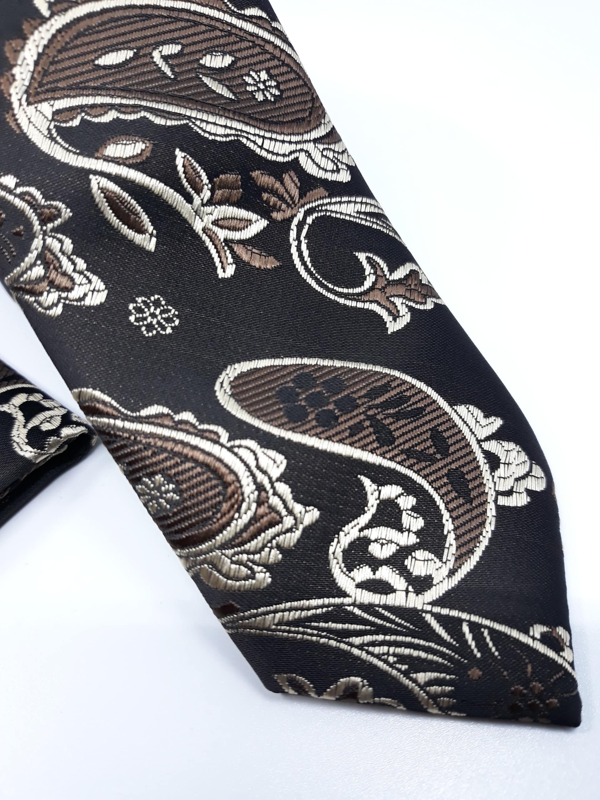 Elegancki Krawat z Poszetką Brązowy Wzór