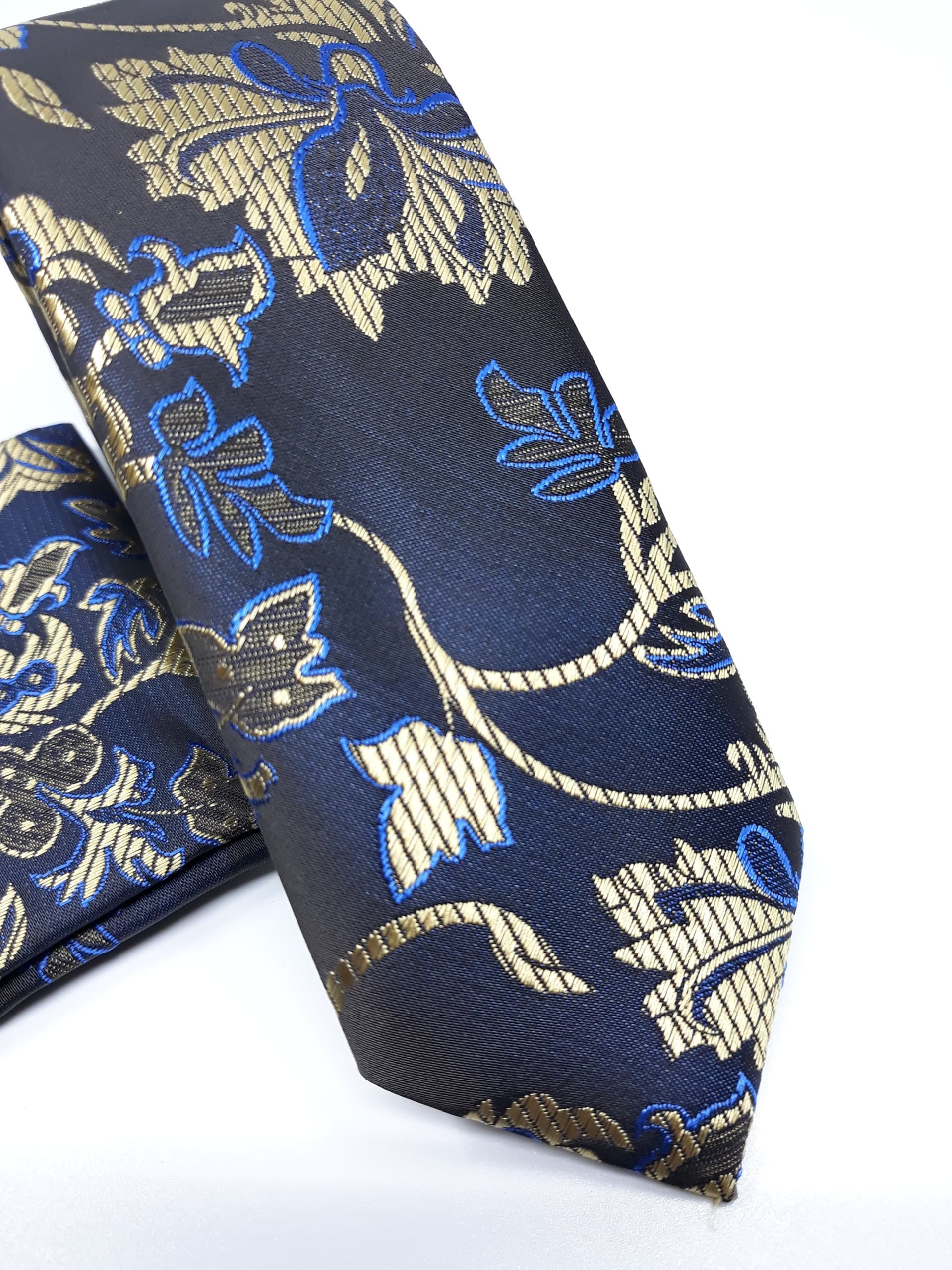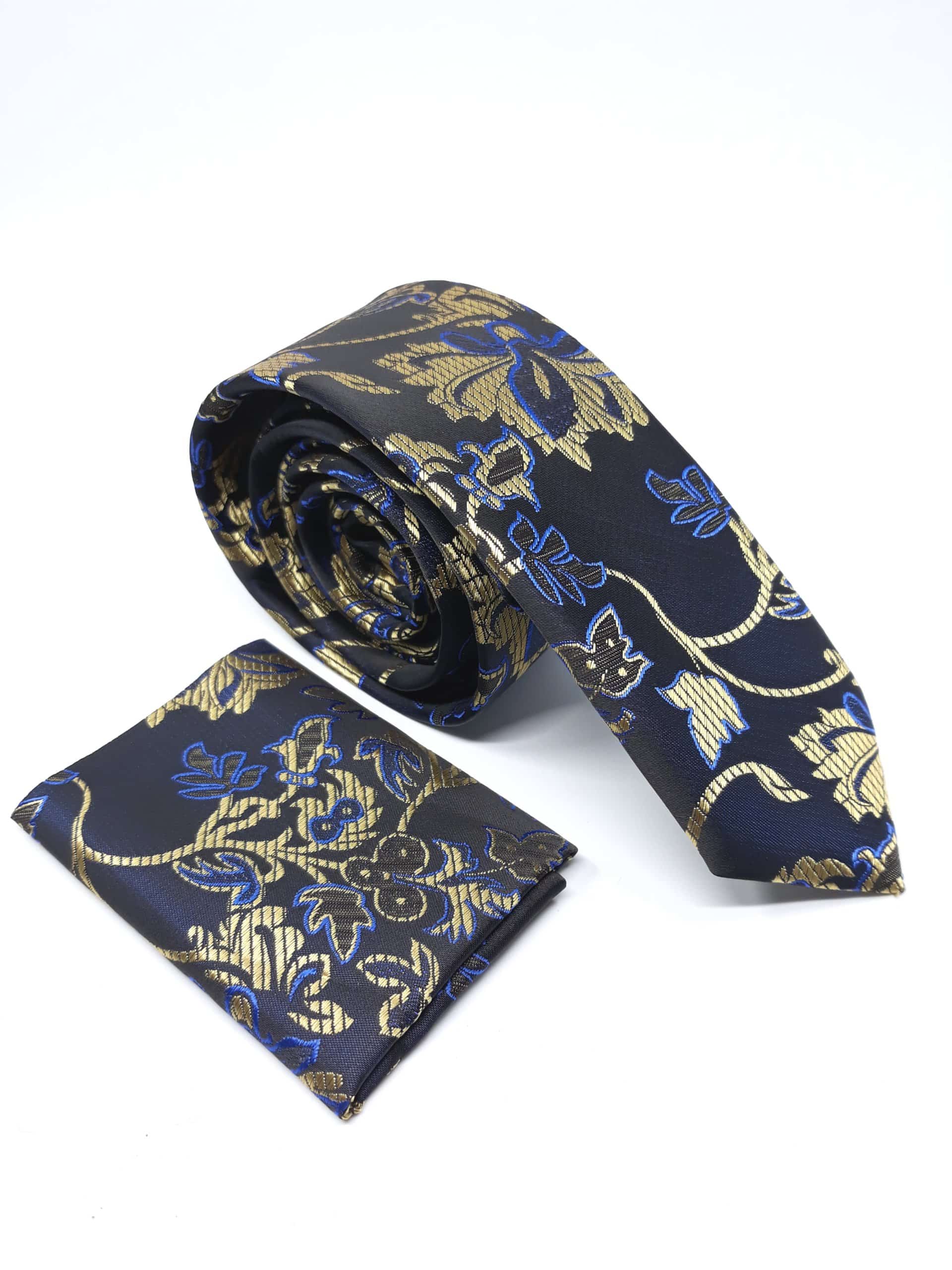 Elegancki Krawat z Poszetką Czarno Złoty