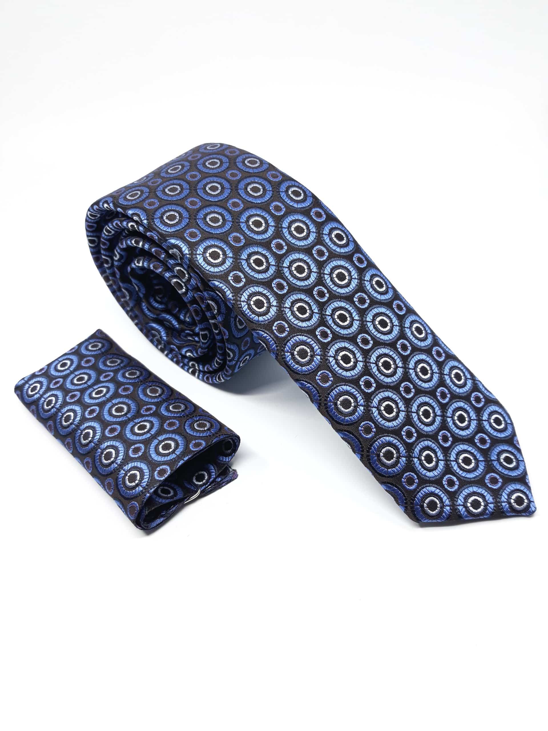 Elegancki Krawat z Poszetką Niebieskie Kółka