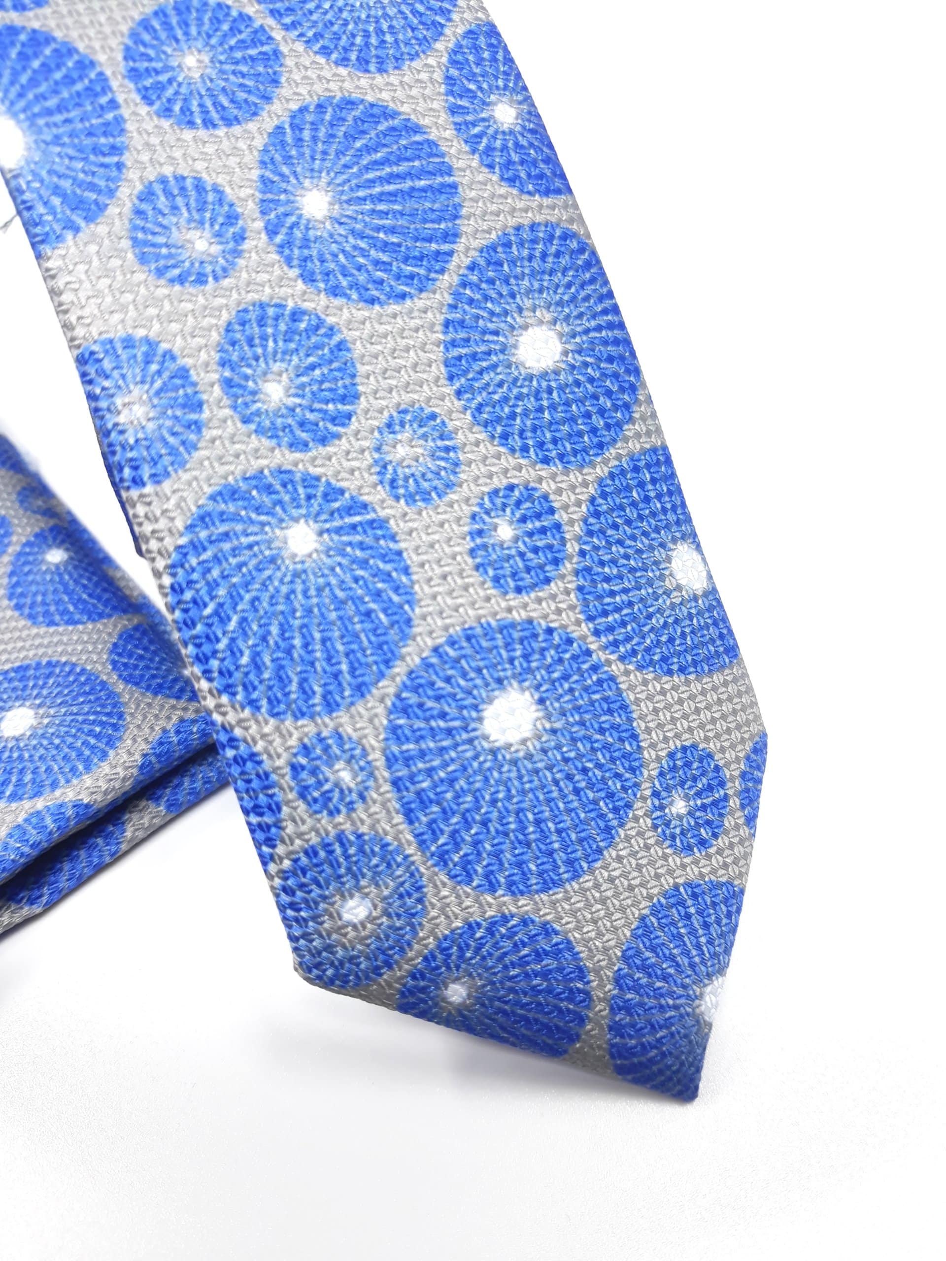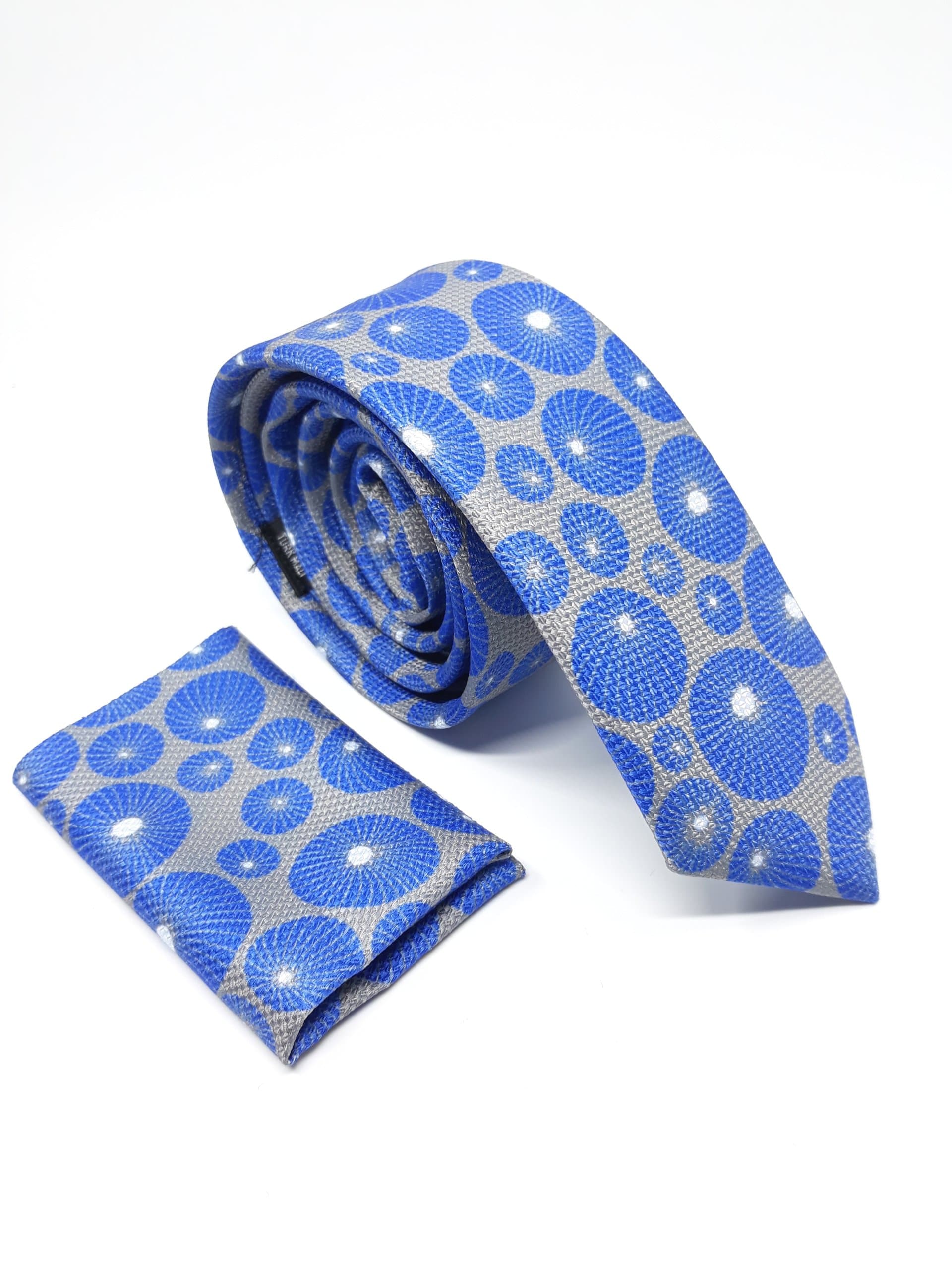 Elegancki Krawat z Poszetką Szary Niebieskie Koła