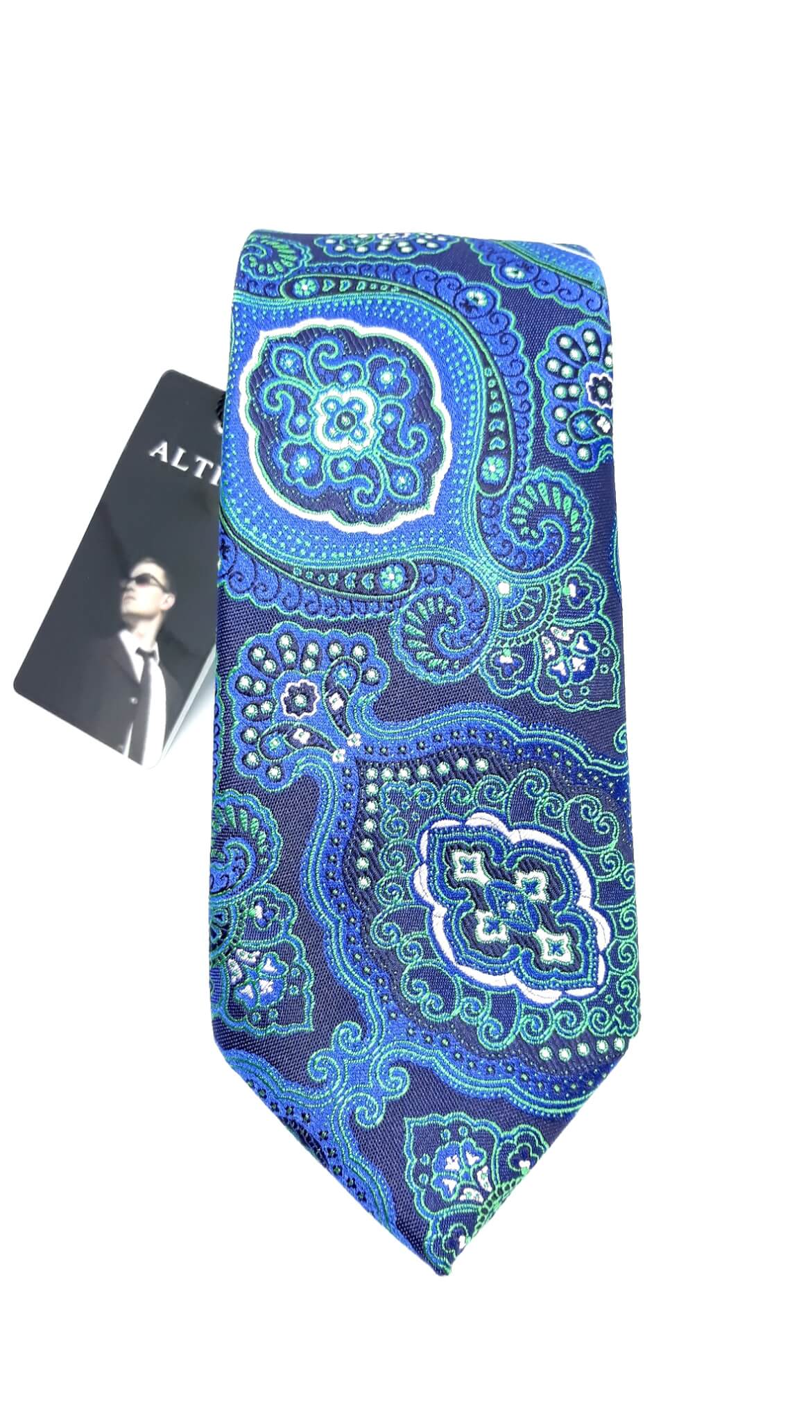 Elegancki krawat męski firmy Alties o klasycznym i modnym kroju, zielono granatowy we wzór. Krawat o klasycznym i modnym kroju, wykonany z microfibry. Jest on bardzo ważnym elementem ubioru, dzięki któremu każdy mężczyzna może wnieść do swojego stroju odrobinę koloru. Kompletując garderobę należy pamiętać, aby krawat tworzył spójny zestaw z marynarką lub koszulą. Jego unikatowy wzór z pewnością spełni swoją funkcję w połączeniu z różnymi tkaninami w kilku wariantach kolorystycznych. Ponadto wyraźne i mocne akcenty zdobnicze dodadzą charakteru i pozwolą wyróżnić się stylem. Krawat można dobrać zarówno do karnacji, garnituru jak i temperamentu.