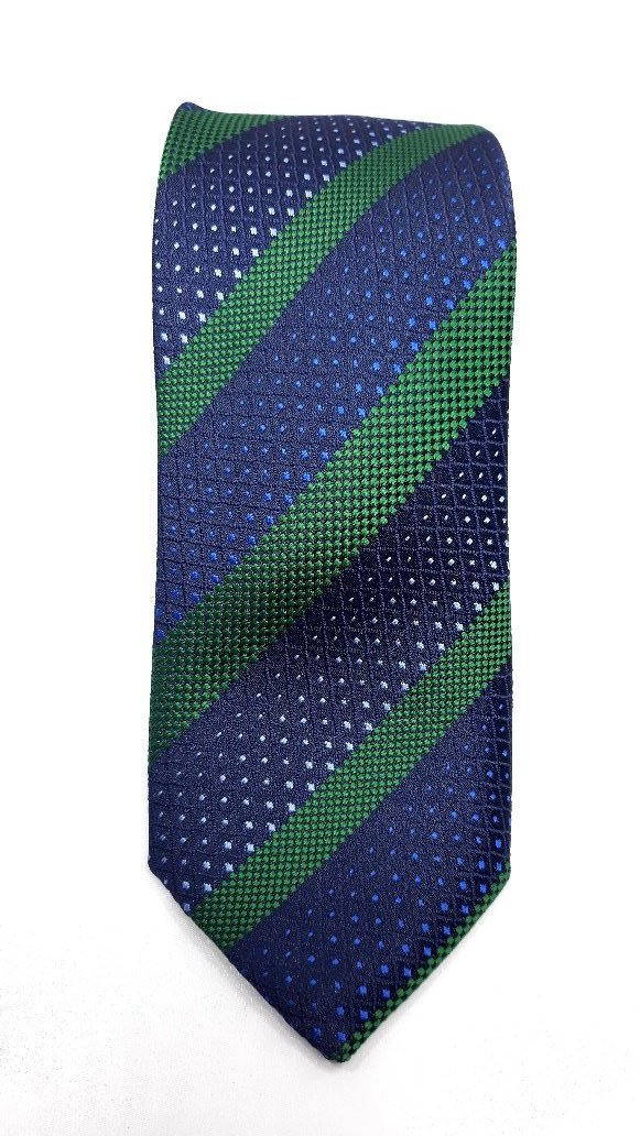 Elegancki krawat męski firmy Piotr o klasycznym i modnym kroju, zielono granatowy w paski. Krawat o klasycznym i modnym kroju, wykonany ze sztucznego jedwabiu. Jest on bardzo ważnym elementem ubioru, dzięki któremu każdy mężczyzna może wnieść do swojego stroju odrobinę koloru. Kompletując garderobę należy pamiętać, aby krawat tworzył spójny zestaw z marynarką lub koszulą. Jego unikatowy wzór z pewnością spełni swoją funkcję w połączeniu z różnymi tkaninami w kilku wariantach kolorystycznych. Ponadto wyraźne i mocne akcenty zdobnicze dodadzą charakteru i pozwolą wyróżnić się stylem. Krawat można dobrać zarówno do karnacji, garnituru jak i temperamentu.
