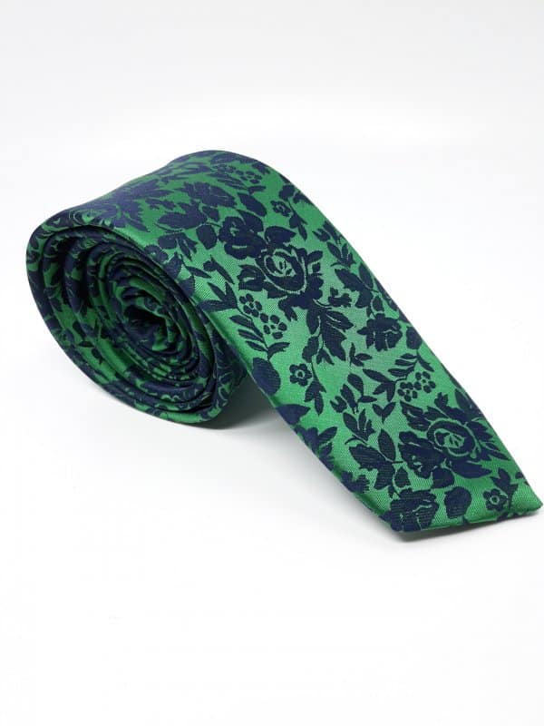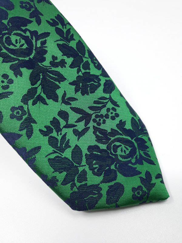 Elegancki Krawat Zielony Granatowe Kwiatki