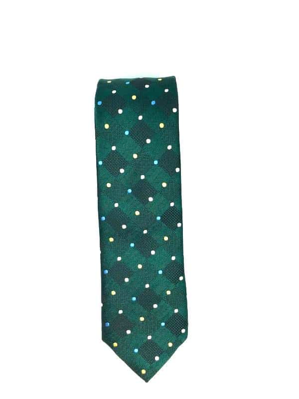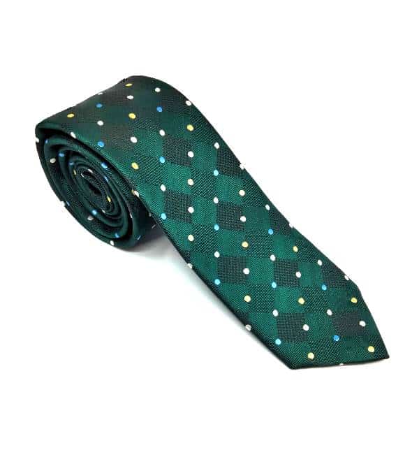 Elegancki krawat męski firmy Piotr, zielony w kropki. Krawat o klasycznym i modnym kroju, wykonany ze sztucznego jedwabiu. Jest on bardzo ważnym elementem ubioru, dzięki któremu każdy mężczyzna może wnieść do swojego stroju odrobinę koloru. Kompletując garderobę należy pamiętać, aby krawat tworzył spójny zestaw z marynarką lub koszulą. Jego unikatowy wzór z pewnością spełni swoją funkcję w połączeniu z różnymi tkaninami w kilku wariantach kolorystycznych. Ponadto wyraźne i mocne akcenty zdobnicze dodadzą charakteru i pozwolą wyróżnić się stylem. Krawat można dobrać zarówno do karnacji, garnituru jak i temperamentu.