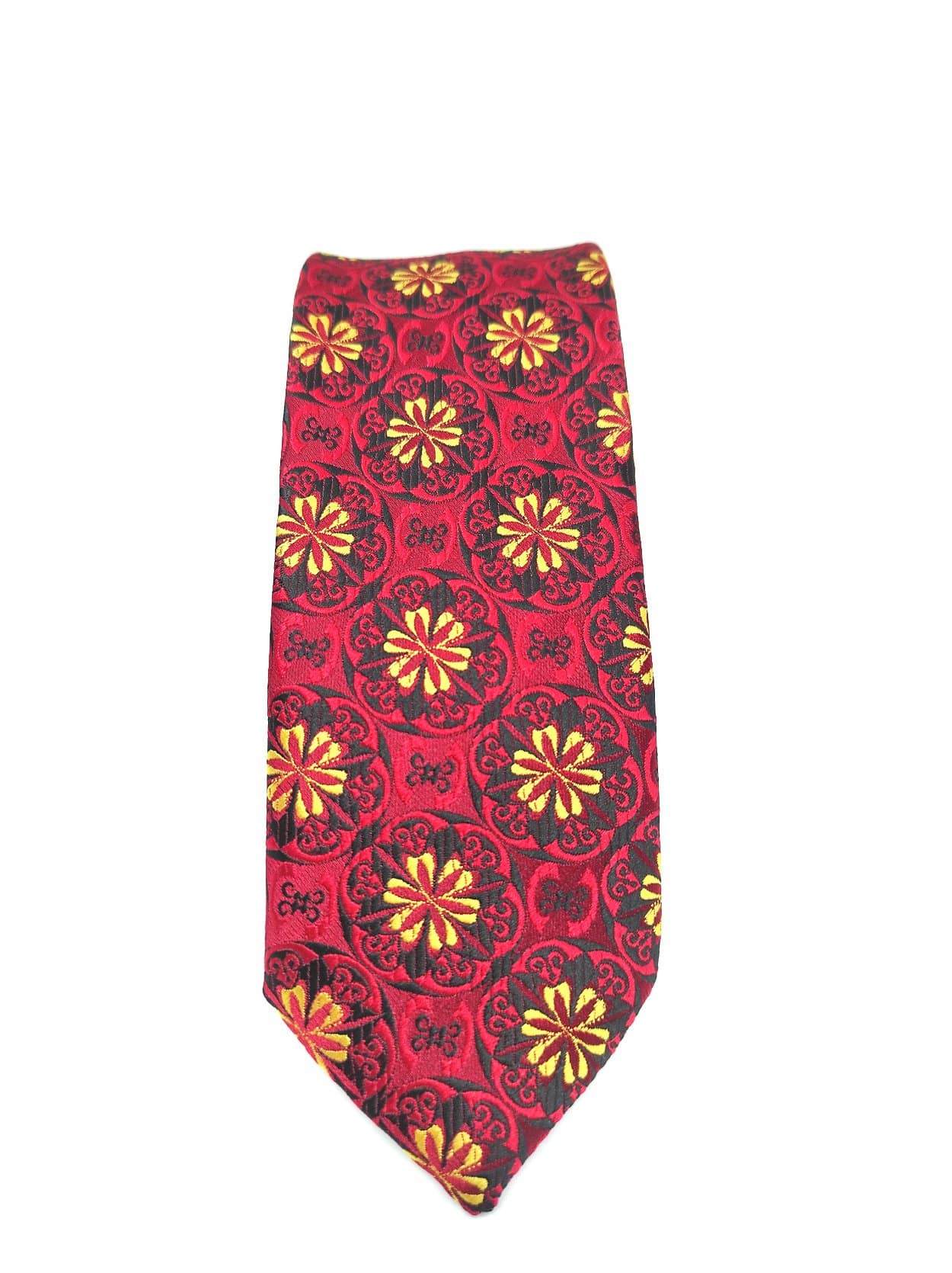 Elegancki krawat męski firmy Piotr bordowy w żółte kwiatki o klasycznym i modnym kroju.Krawat o klasycznym i modnym kroju, wykonany ze sztucznego jedwabiu. Jest on bardzo ważnym elementem ubioru, dzięki któremu każdy mężczyzna może wnieść do swojego stroju odrobinę koloru. Kompletując garderobę należy pamiętać, aby krawat tworzył spójny zestaw z marynarką lub koszulą. Jego unikatowy wzór z pewnością spełni swoją funkcję w połączeniu z różnymi tkaninami w kilku wariantach kolorystycznych. Ponadto wyraźne i mocne akcenty zdobnicze dodadzą charakteru i pozwolą wyróżnić się stylem. Krawat można dobrać zarówno do karnacji, garnituru jak i temperamentu.
