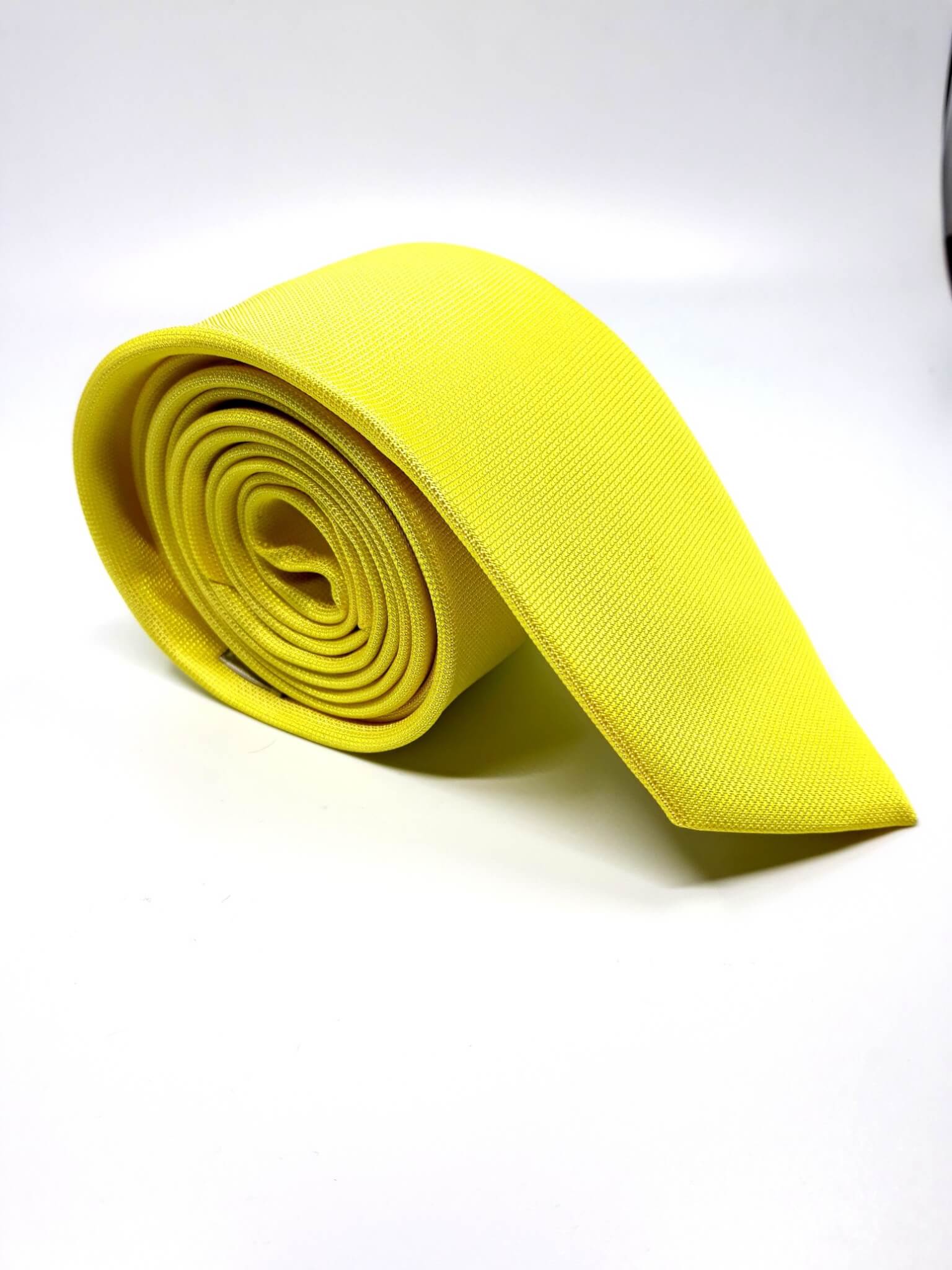 Elegancki krawat męski firmy Piotr o klasycznym i modnym kroju, żółty – gładki.
