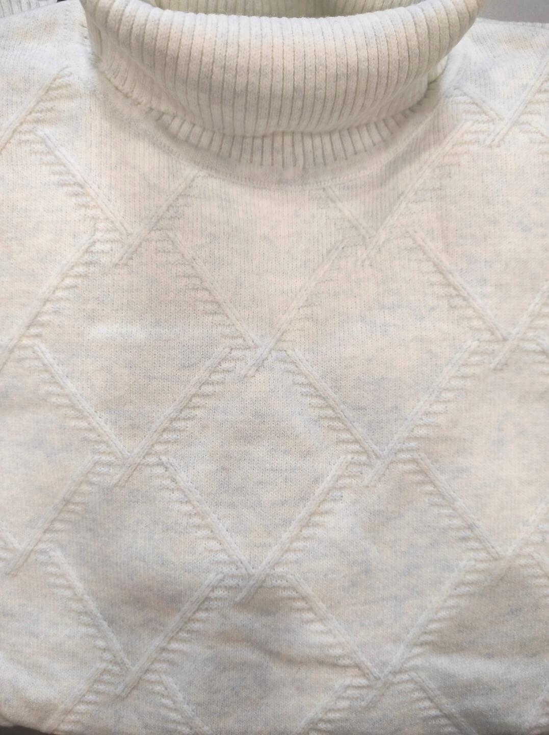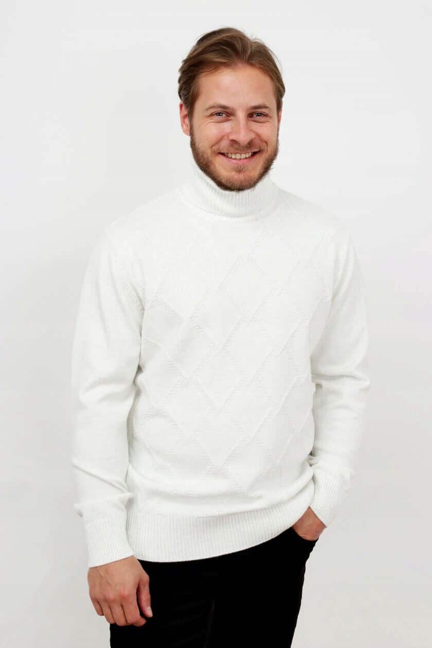 Golf Męski Wełniany Kremowy ( delikatnie wpleciona nić błękitna) . Miękki i przyjemny do ciała materiał, który nie mechaci się i nie rozciąga. Klasyczny oraz wełniany. Najwyższa jakość wykonania. Bez wątpienia świetnie sprawdza się w chłodne miesiące, przede wszystkim znakomicie się układa. Dodatkowo dopasowuje do każdej sylwetki. Doskonały do większości stylizacji.