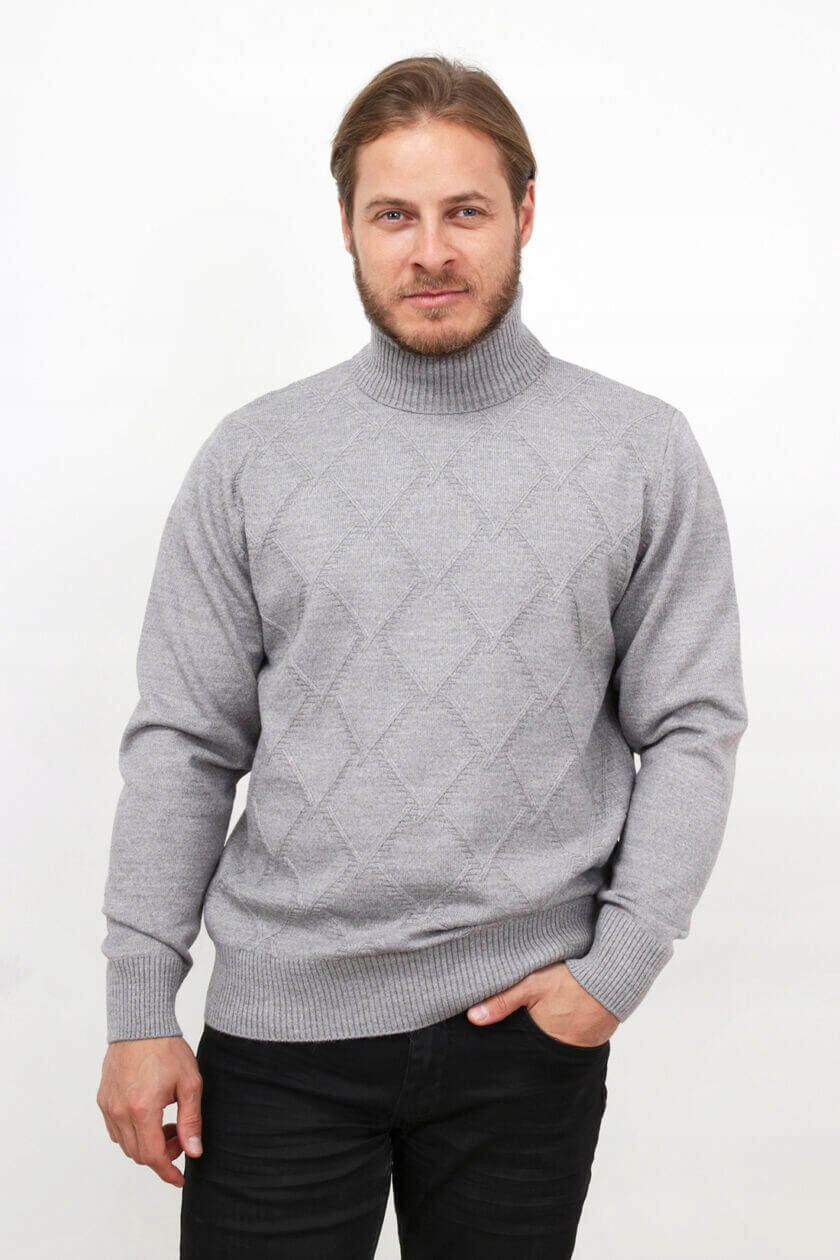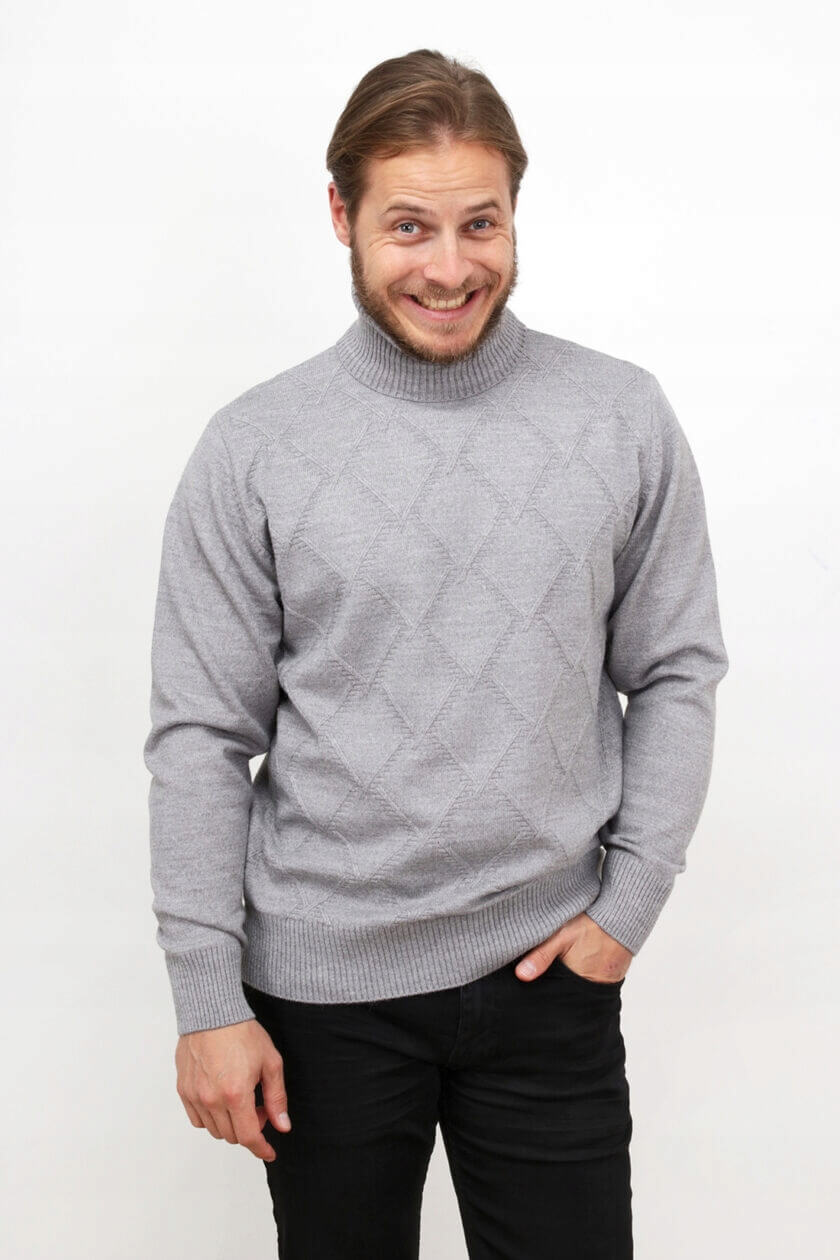 Golf Męski Wełniany Szary Jasny. Miękki i przyjemny do ciała materiał, który nie mechaci się i nie rozciąga. Klasyczny oraz wełniany. Najwyższa jakość wykonania. Bez wątpienia świetnie sprawdza się w chłodne miesiące, przede wszystkim znakomicie się układa. Dodatkowo dopasowuje do każdej sylwetki. Doskonały do większości stylizacji.