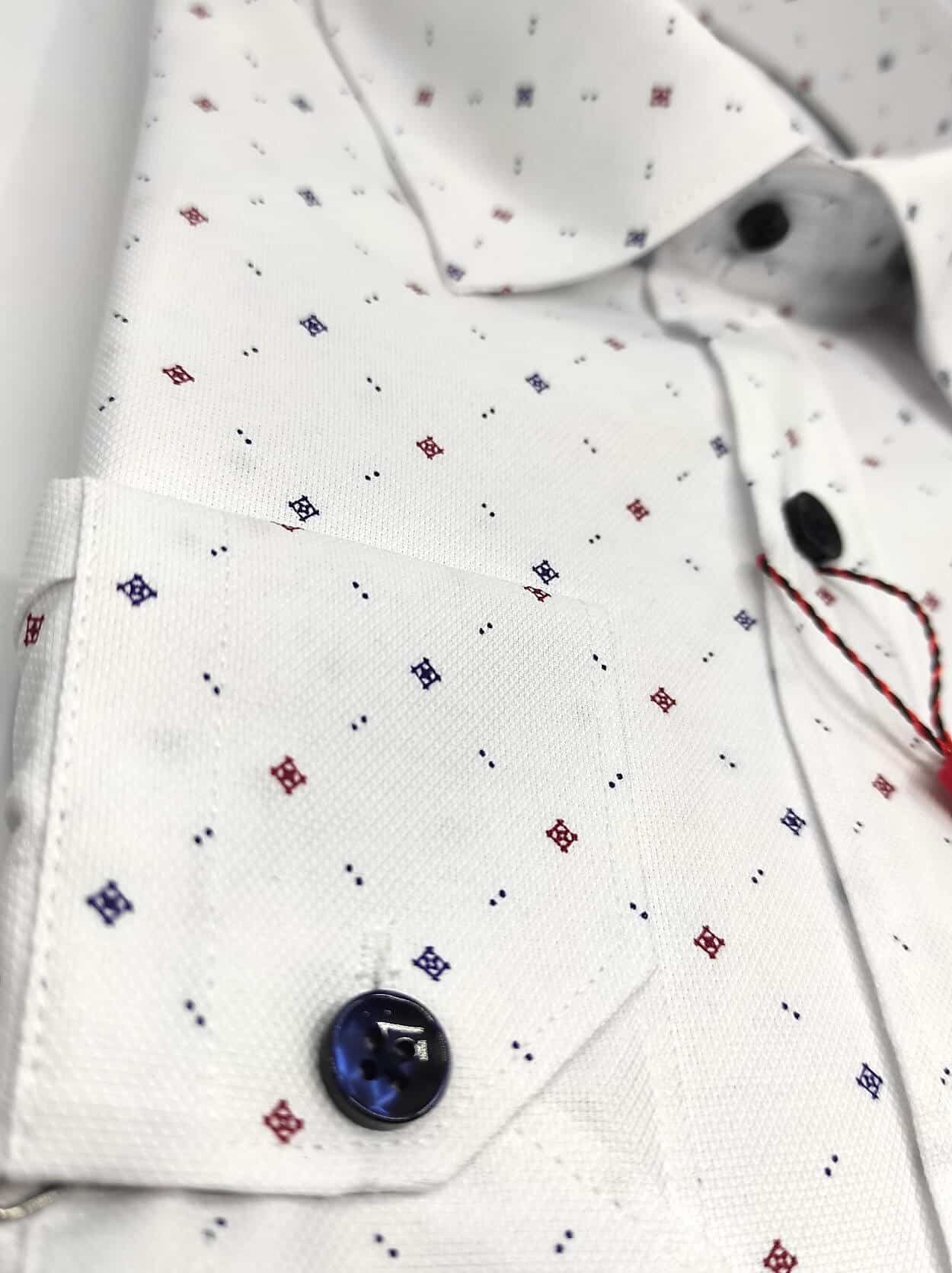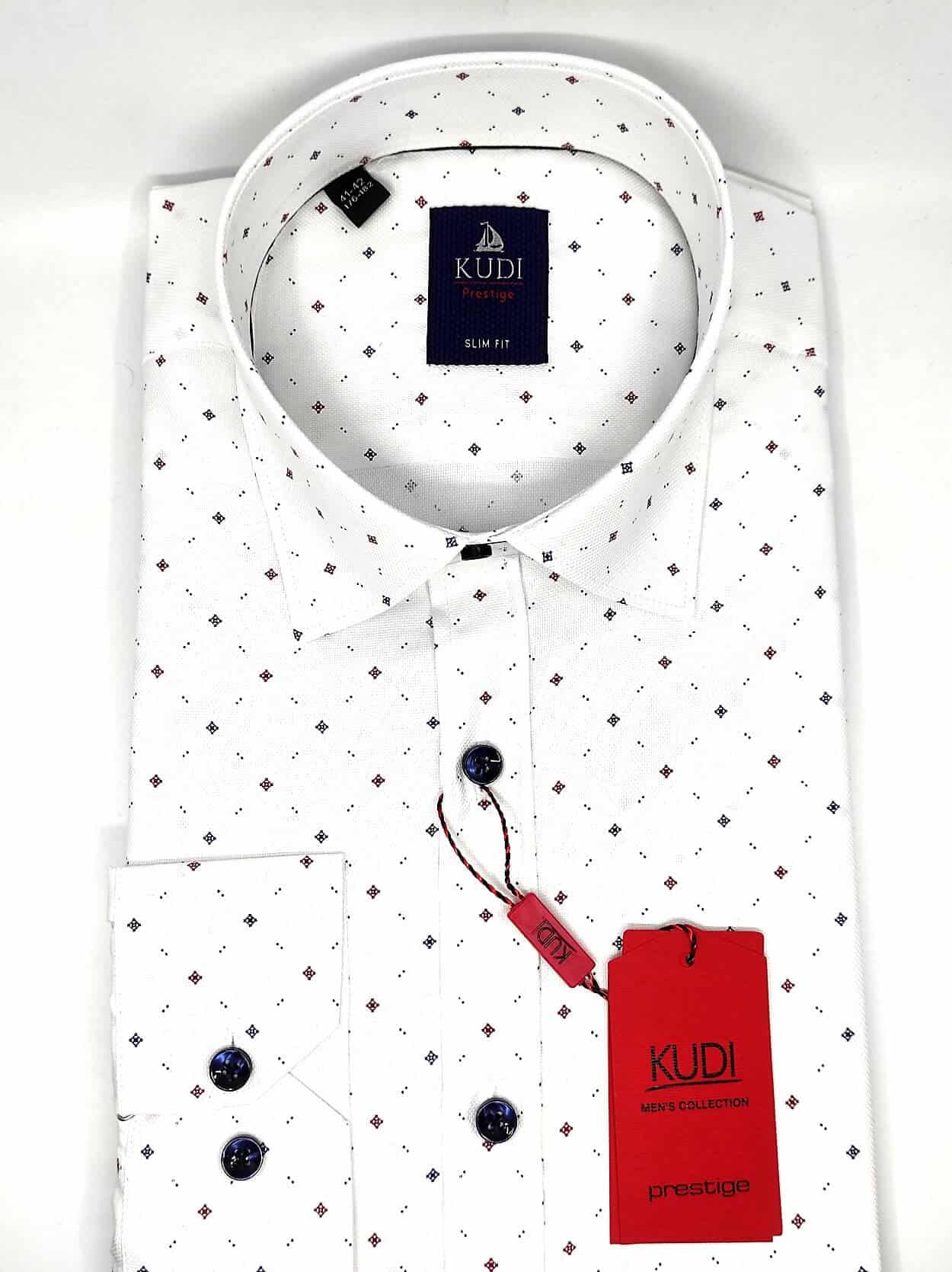Koszula z najnowszej kolekcji firmy Kudi Biała Bordowo Granatowy Wzór .