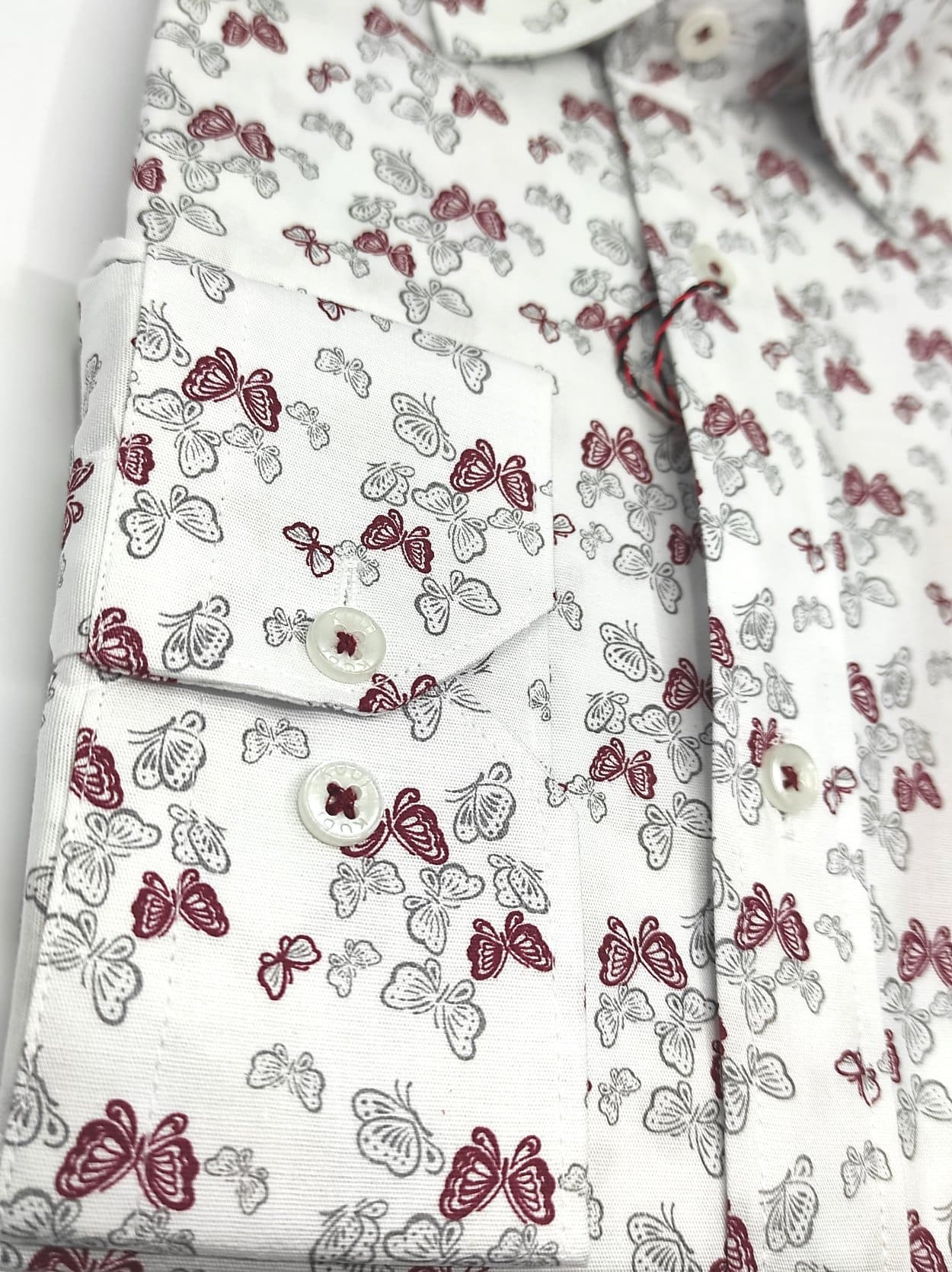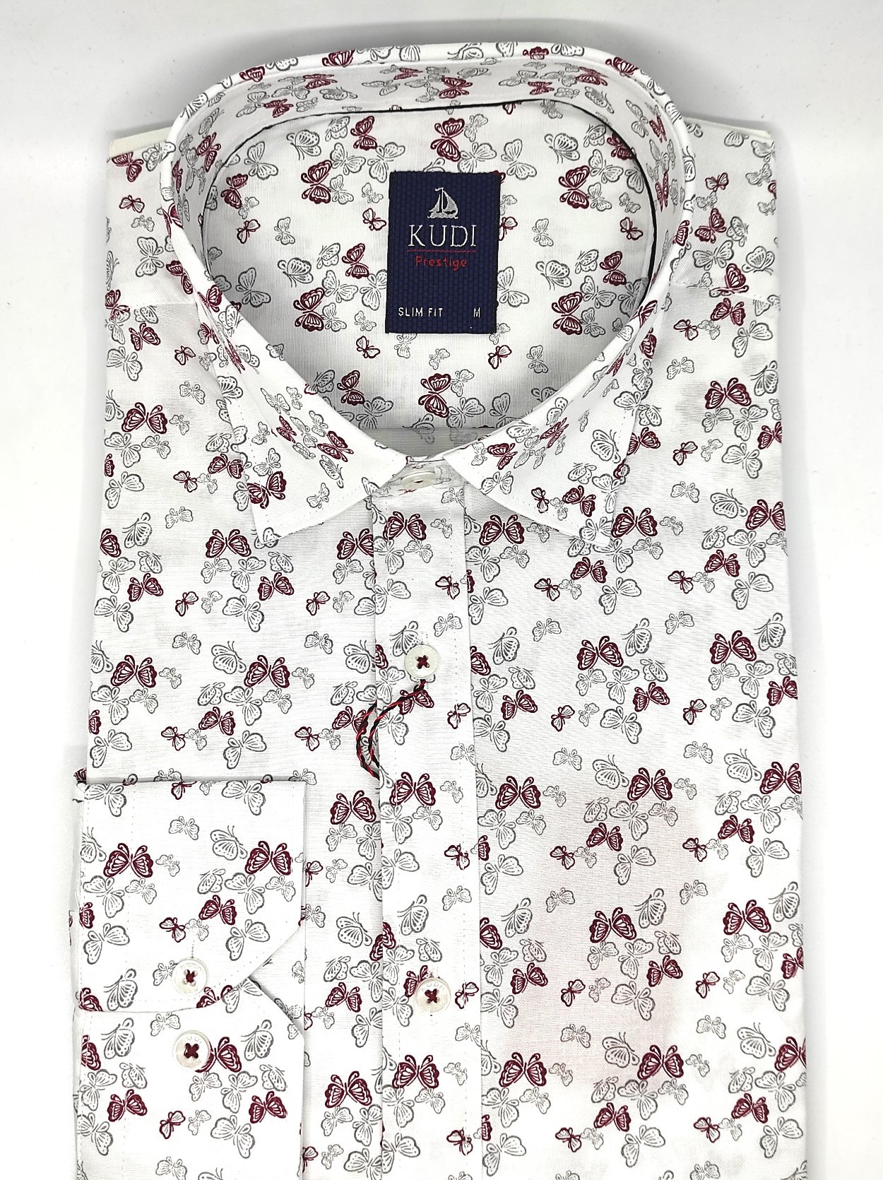 Koszula z najnowszej kolekcji firmy Kudi Biała Bordowe Motyle .