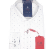 Koszula dziecięca kropki z długim rękawem z mankietem zapinanym na guziki. Kołnierzyk koszulowy podpinany pod spodem guziczkami. Koszula ma krój slim fit podobnie do koszul męskich. Zapięcie z przodu na granatowe guziki. Ubranko wykonane ze 80% bawełny co sprawia że koszula jest miła w dotyku oraz dla ciała. Materiał biały w granatowo niebieskie kropki , wykończony granatem. Rozmiarówka typowa dla danego wzrostu, rozmiary od 98 do 164. Dobierając koszule dla chłopca można dobrać identyczną również dla taty. Zapraszamy na nasze pozostałe strony z koszulami dla naszych Panów.