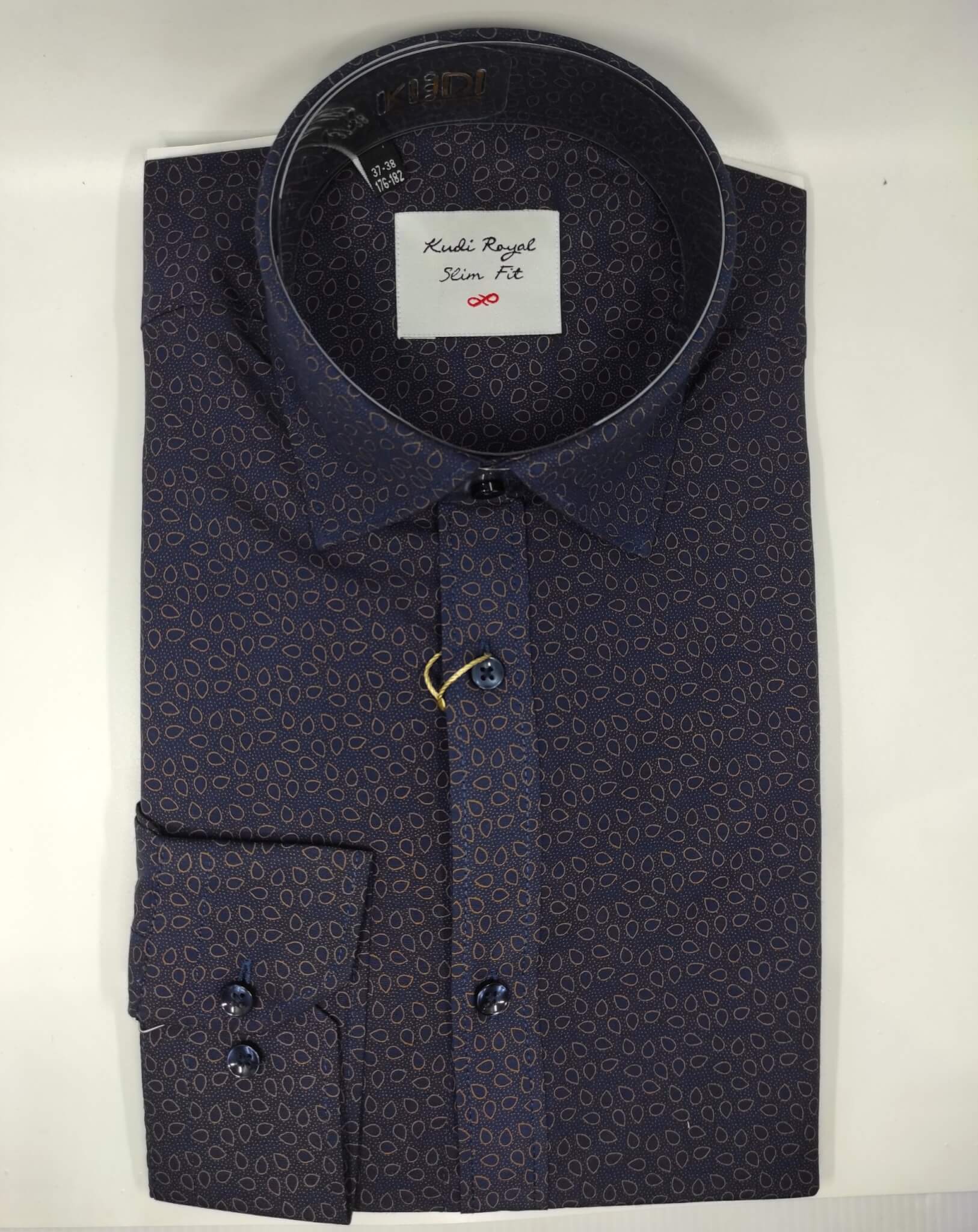 Koszula z najnowszej kolekcji firmy Kudi Royal Granatowa w Brązowe Łezki.