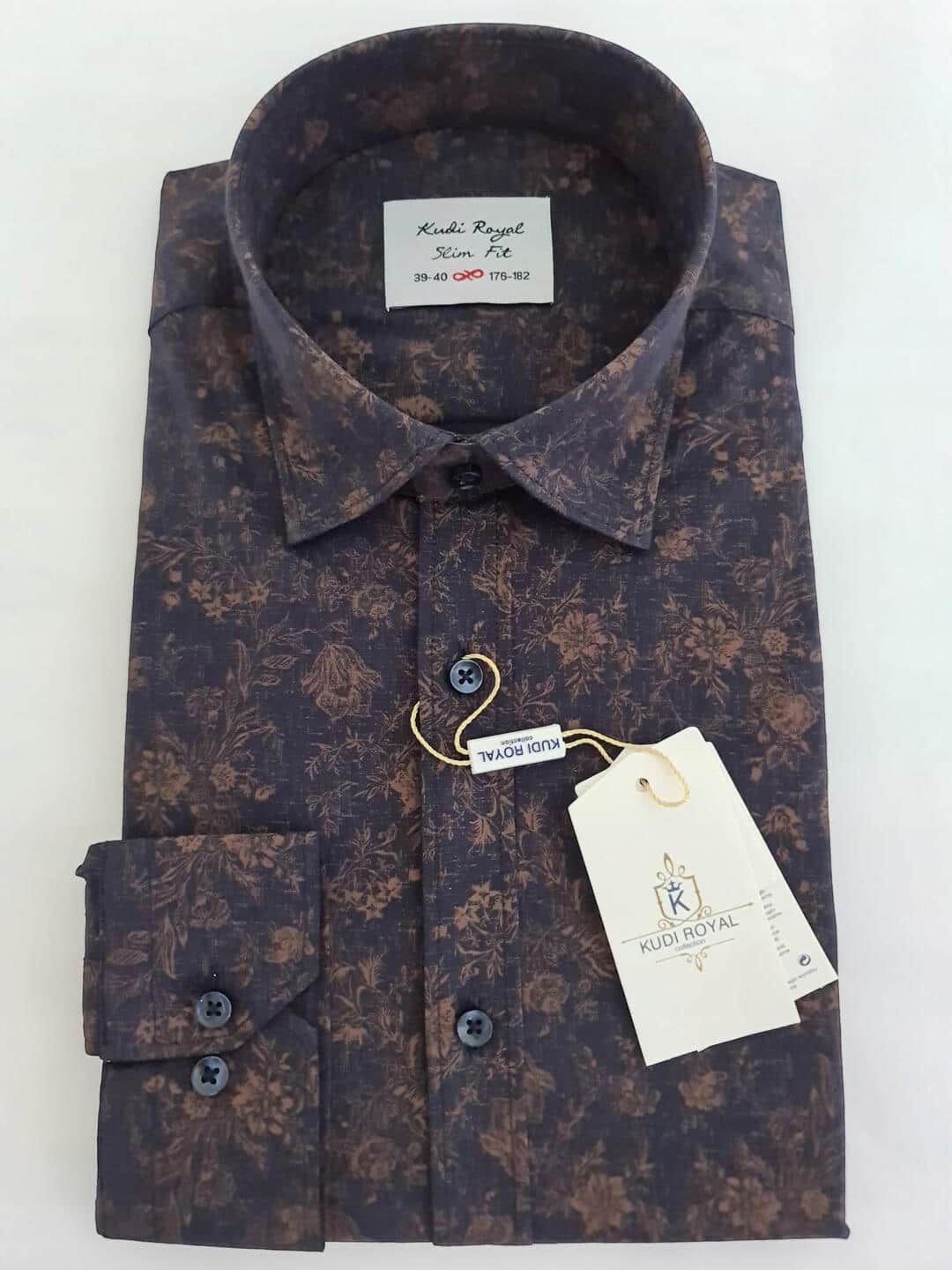 Koszula z najnowszej kolekcji firmy Kudi Royal Granatowa w Brązowy Wzorek.