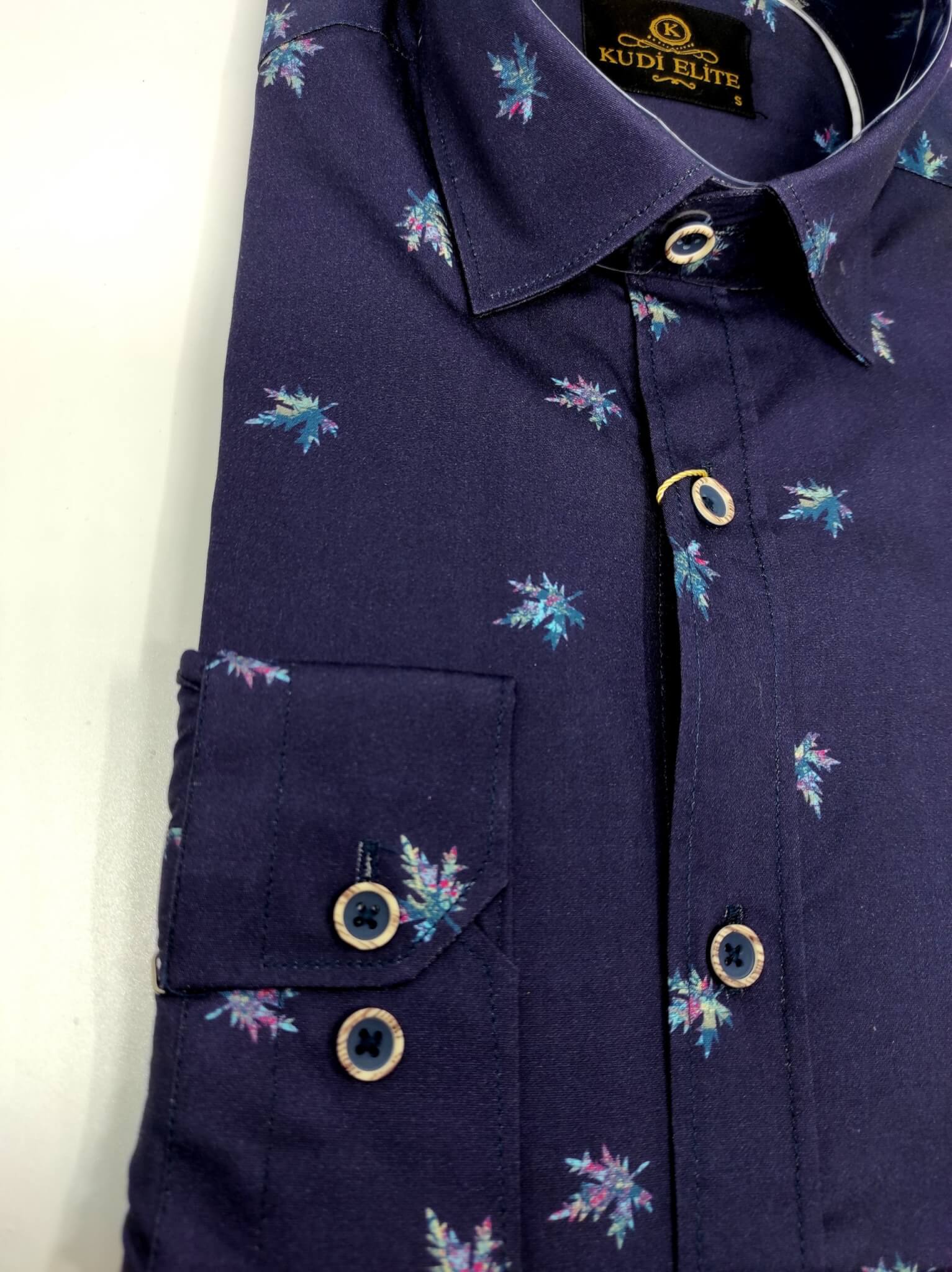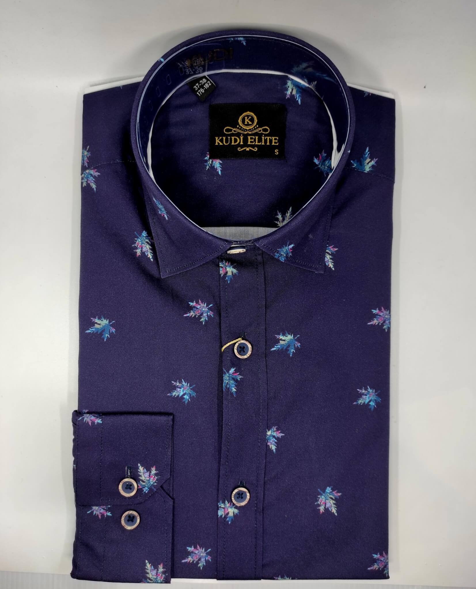 Koszula z najnowszej kolekcji firmy Kudi Elite Granatowa w Listki.