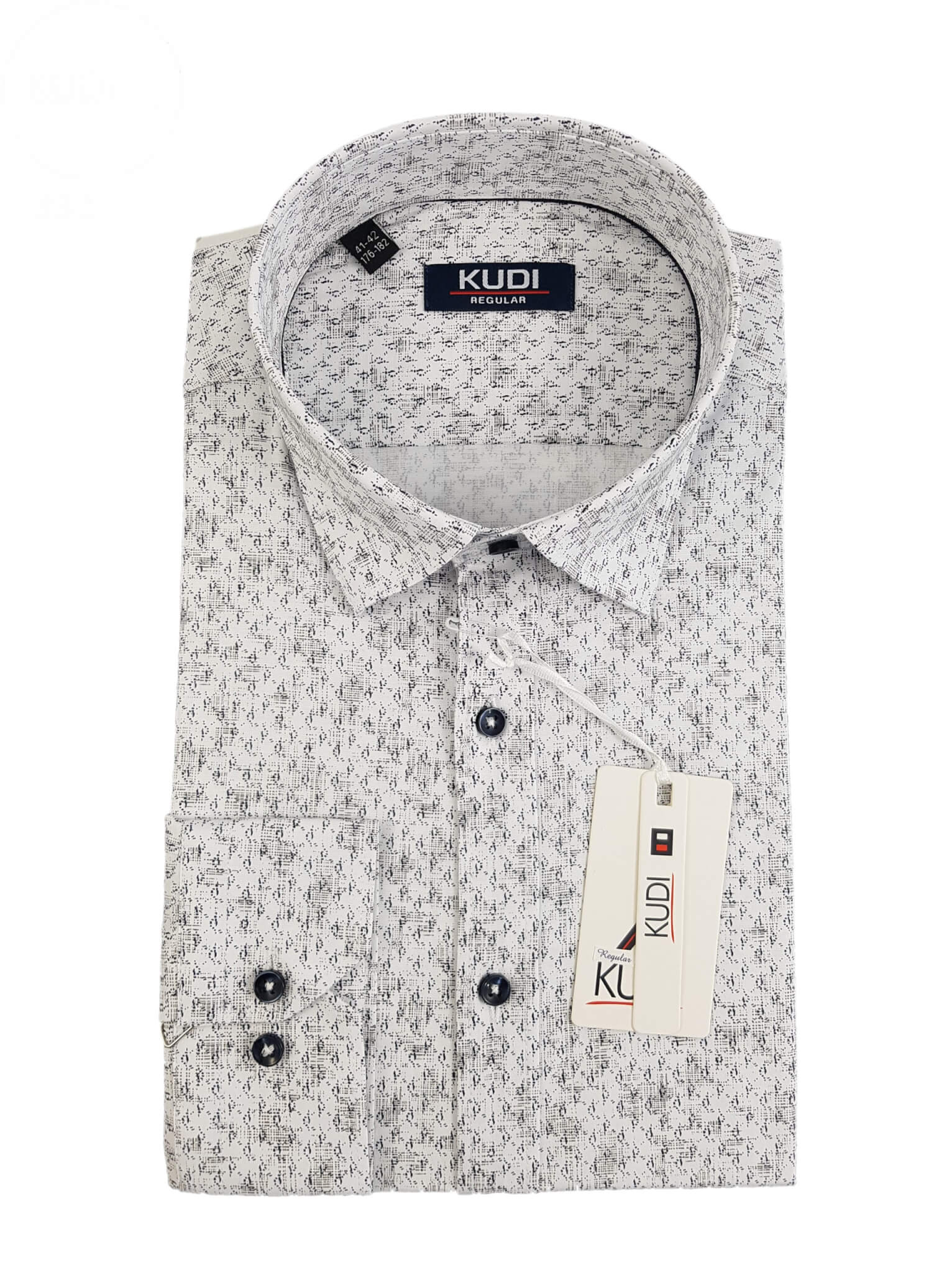 Elegancka Koszula z najnowszej kolekcji firmy Kudi Biała w Granatowy Wzorek Slim.