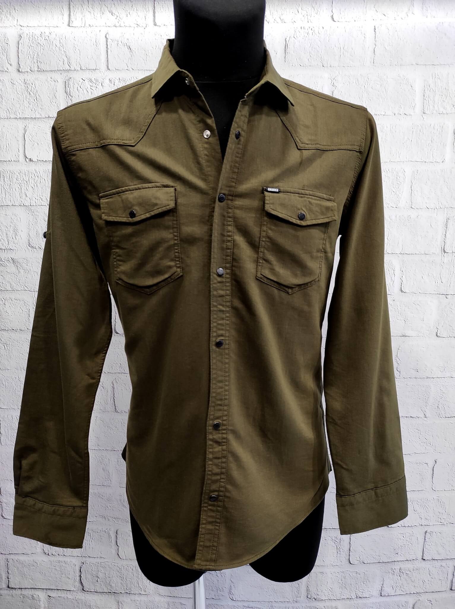 Koszula z najnowszej kolekcji firmy Kudi Jeansowa Bawełniana Ciemna Zieleń.