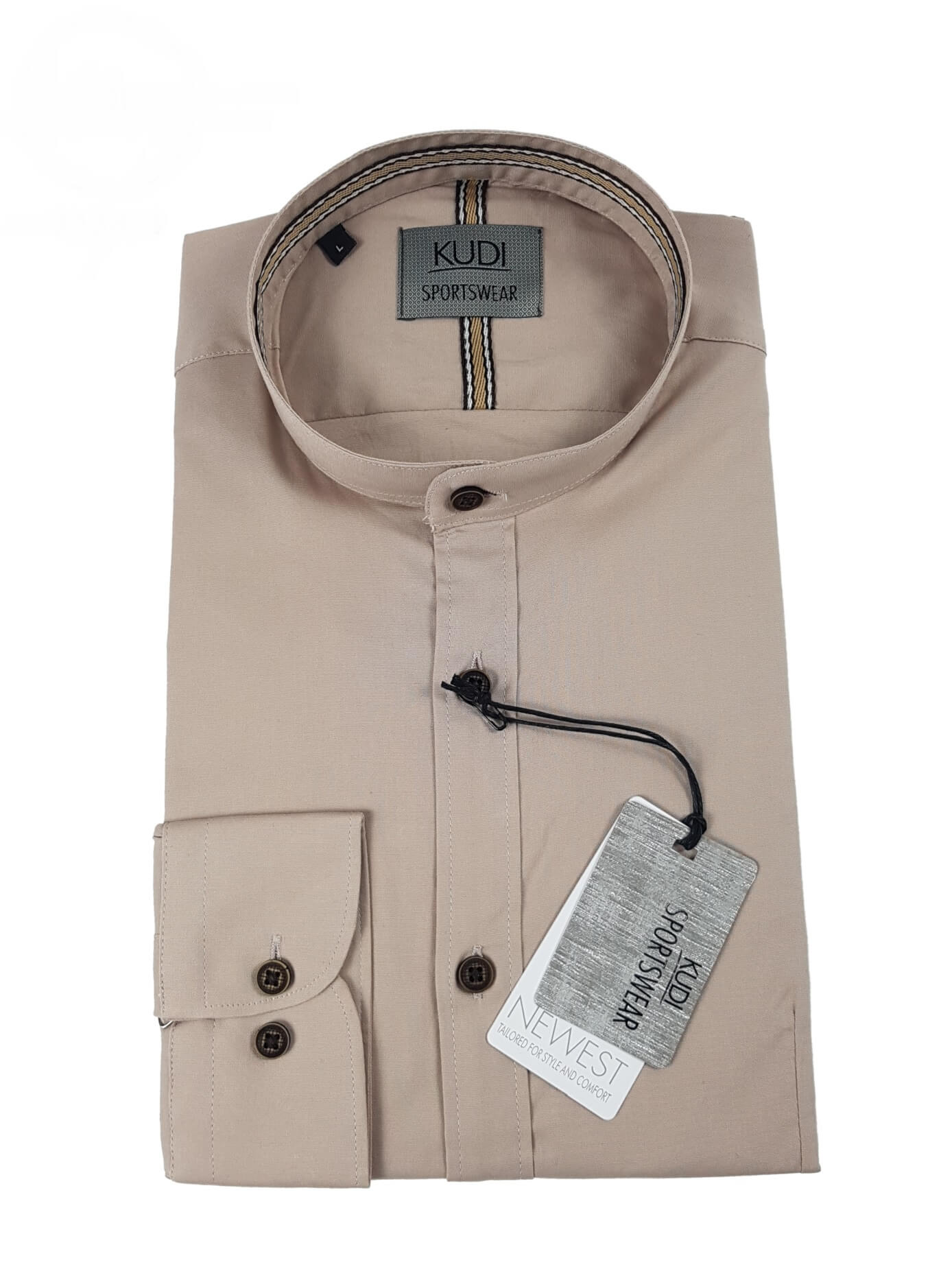 Koszula z najnowszej kolekcji firmy Kudi Beżowa Stójka .