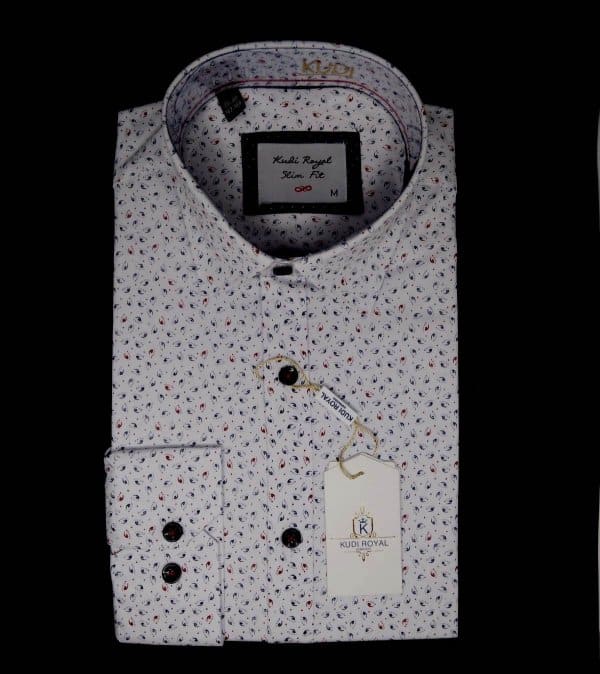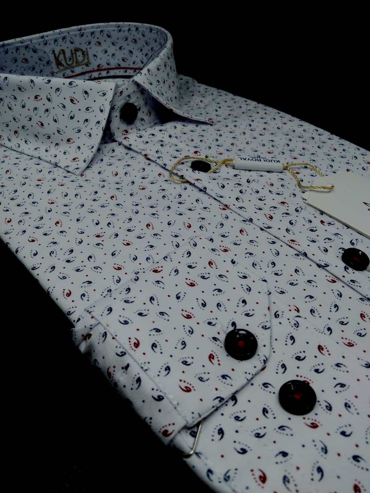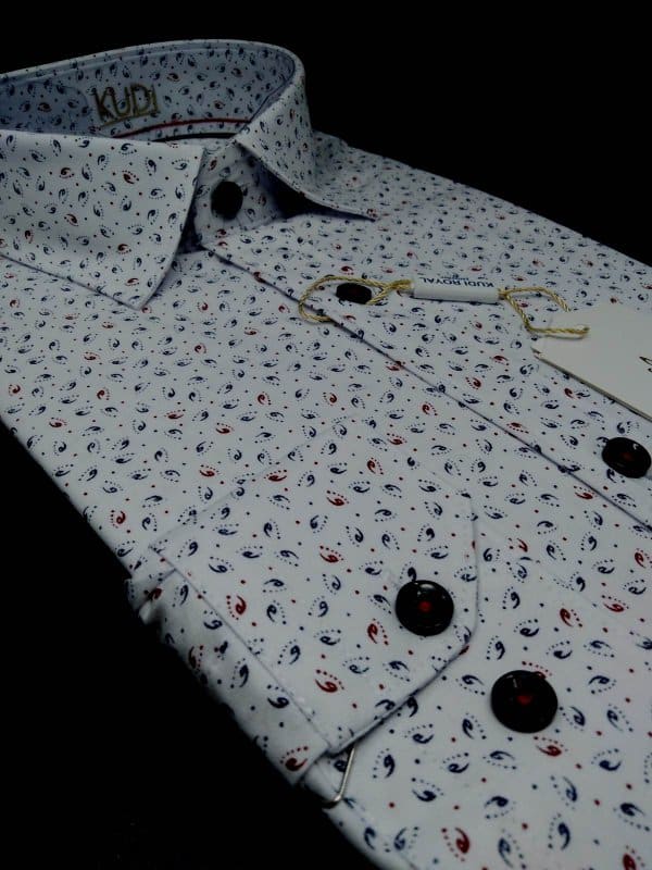 Koszula z najnowszej kolekcji firmy Kudi, biała w ślimaki.
