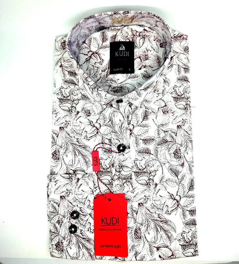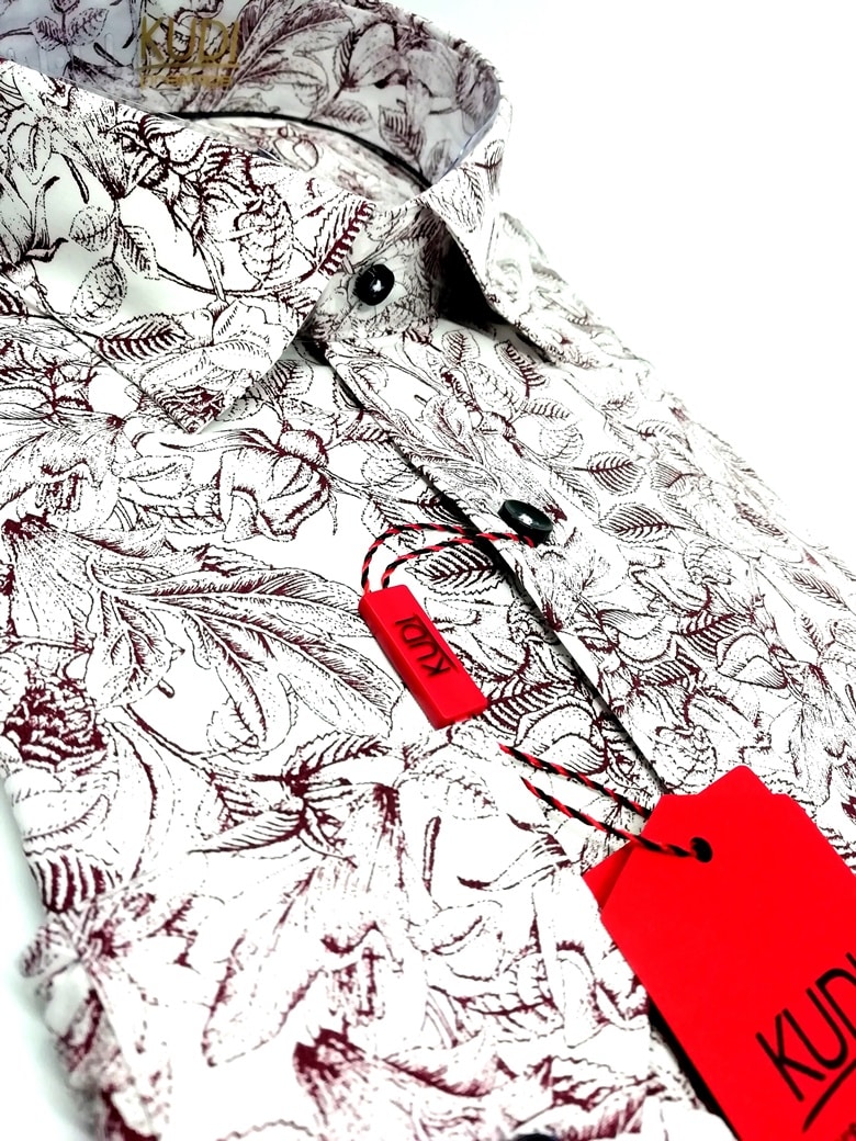 Koszula z najnowszej kolekcji firmy Kudi Elite, biała posiadająca bordowe liście.