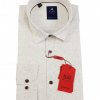 Koszula z najnowszej kolekcji firmy Kudi Ecru Brązowy Delikatny Wzór z Granatowymi Kropeczkami.