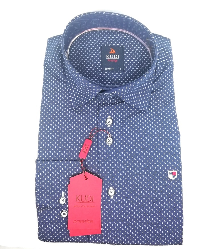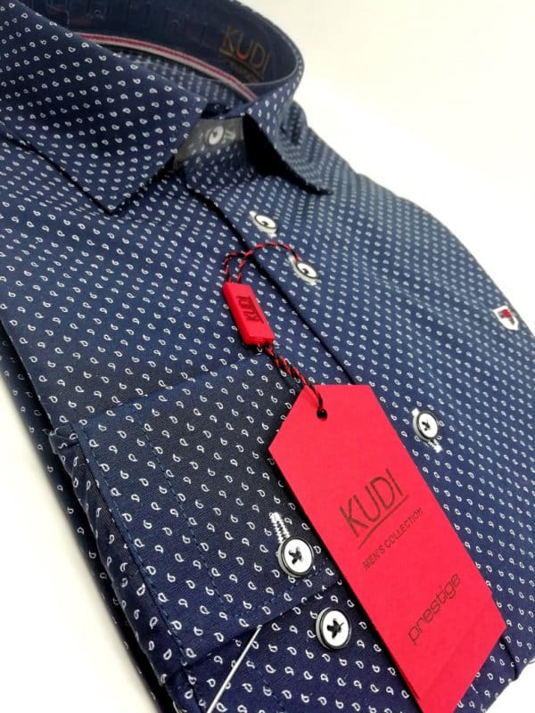 Koszula z najnowszej kolekcji firmy Kudi, granat w białe łezki.