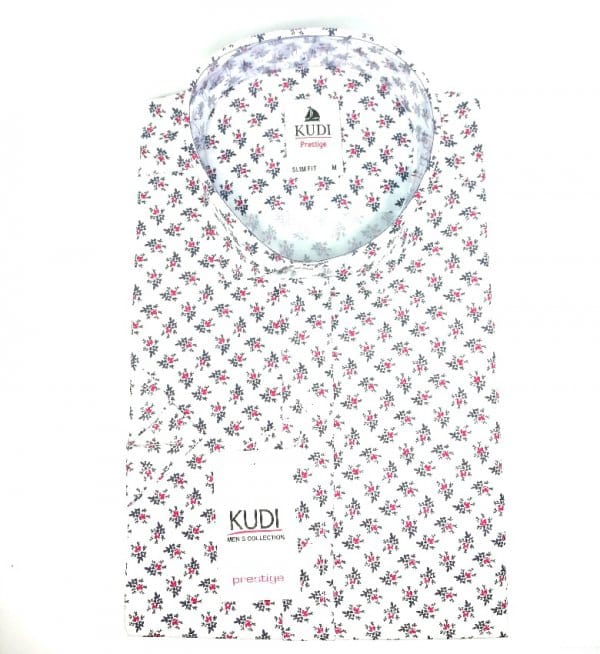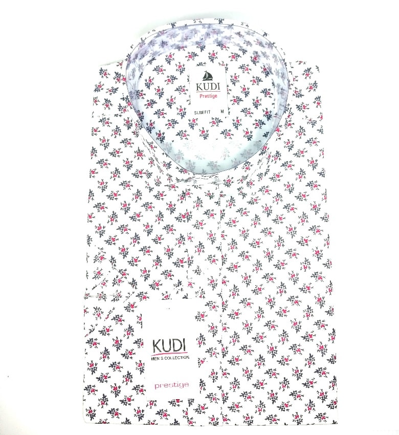 Koszula z najnowszej kolekcji firmy Kudi, kwiaty – krótki rękaw.