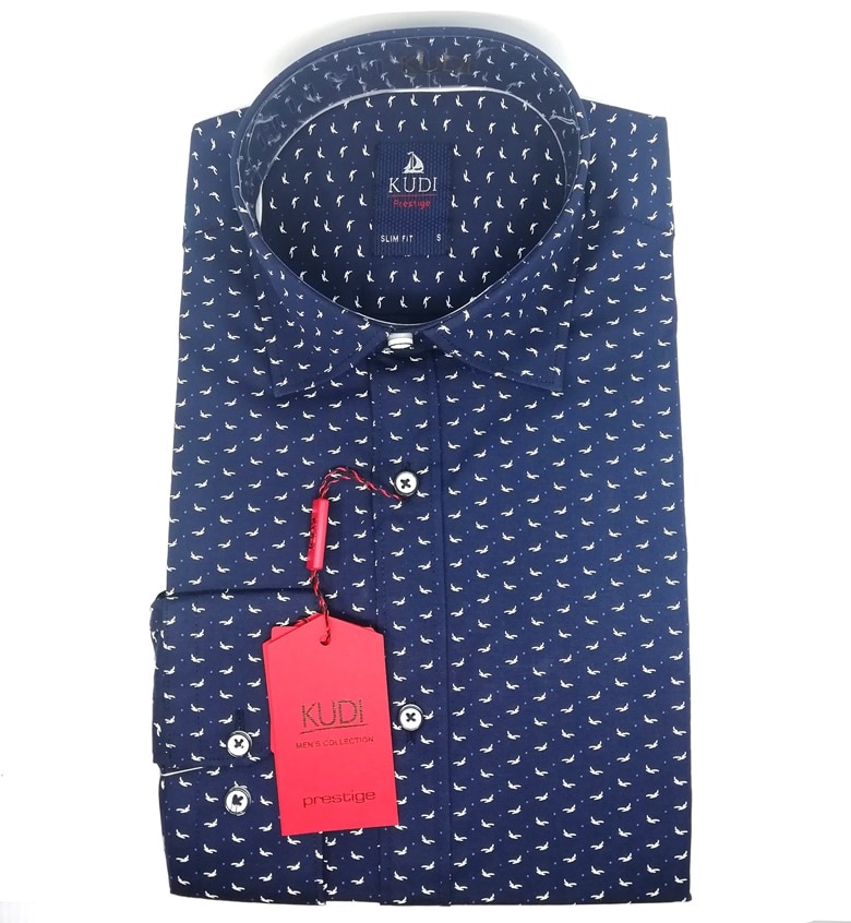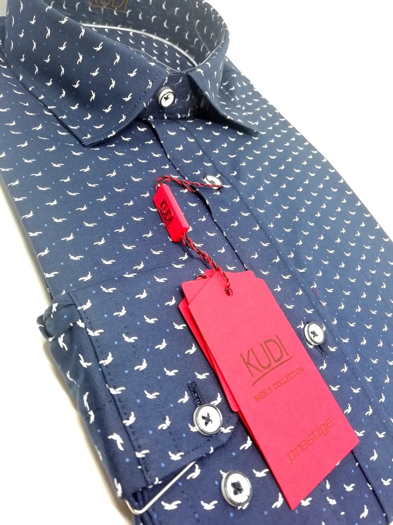 Koszula z najnowszej kolekcji firmy Kudi, granatowy w ptaszki.